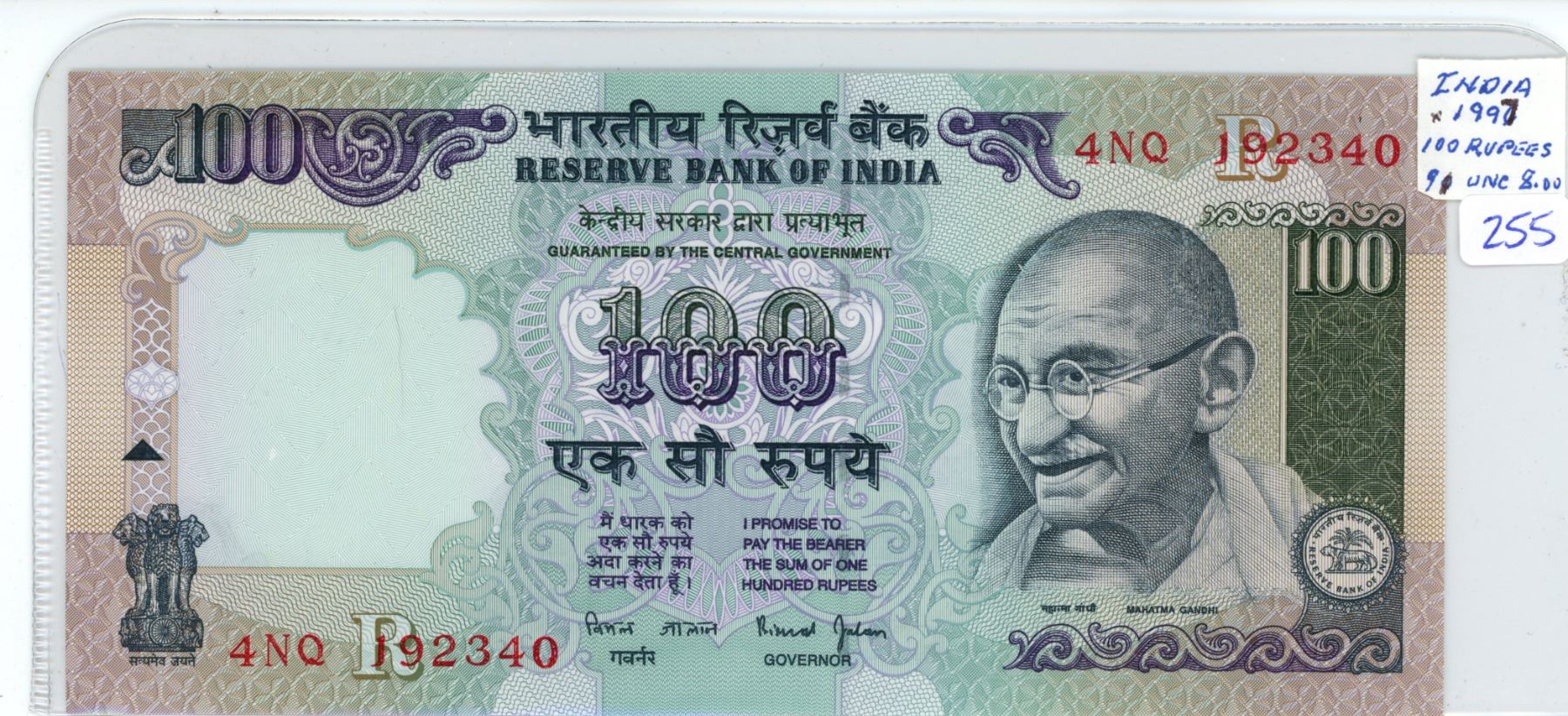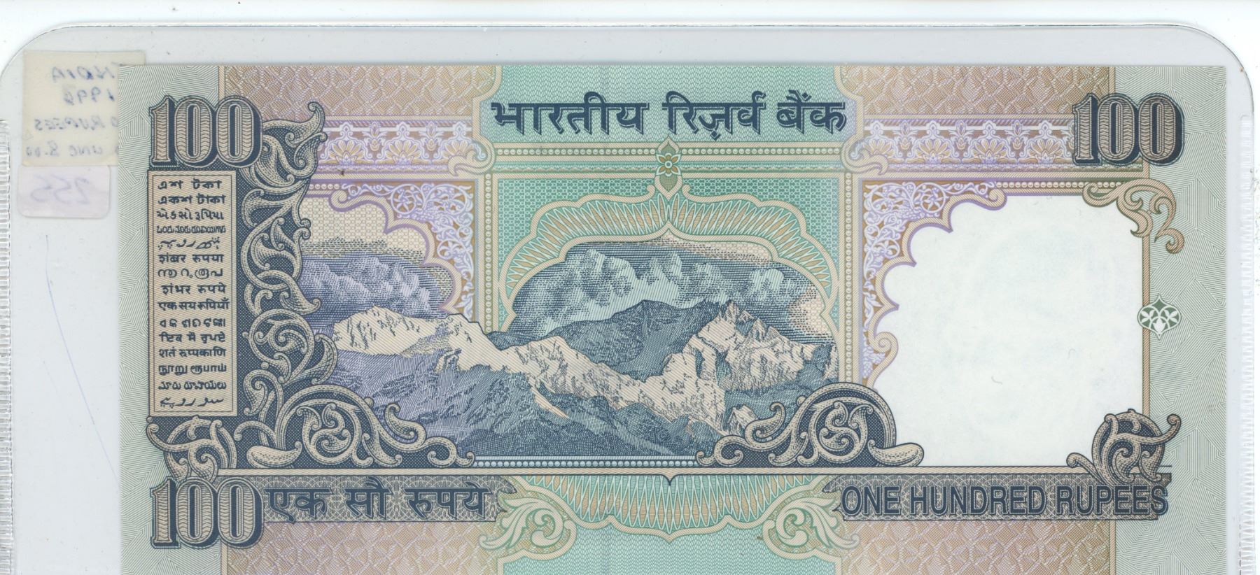India. Reserve Bank of India. 1997 100 rupees. Gandhi/Himalaya Mountains. Uncirculated.