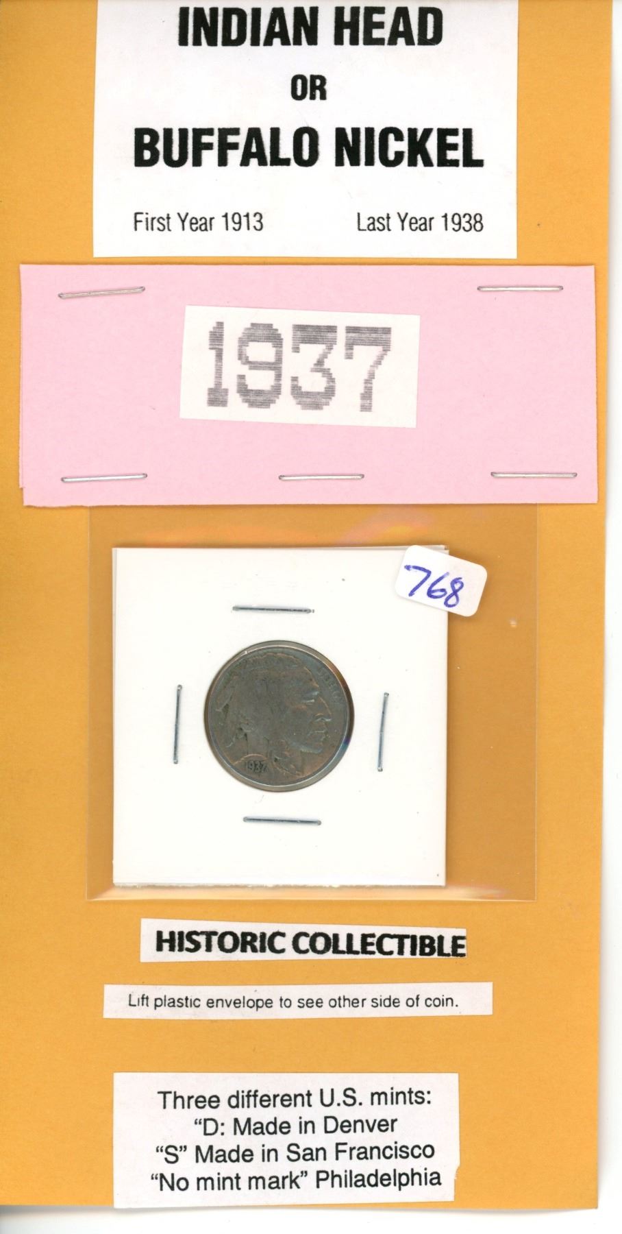 Indian head or Buffalo Nickel 1937 coin US Currency