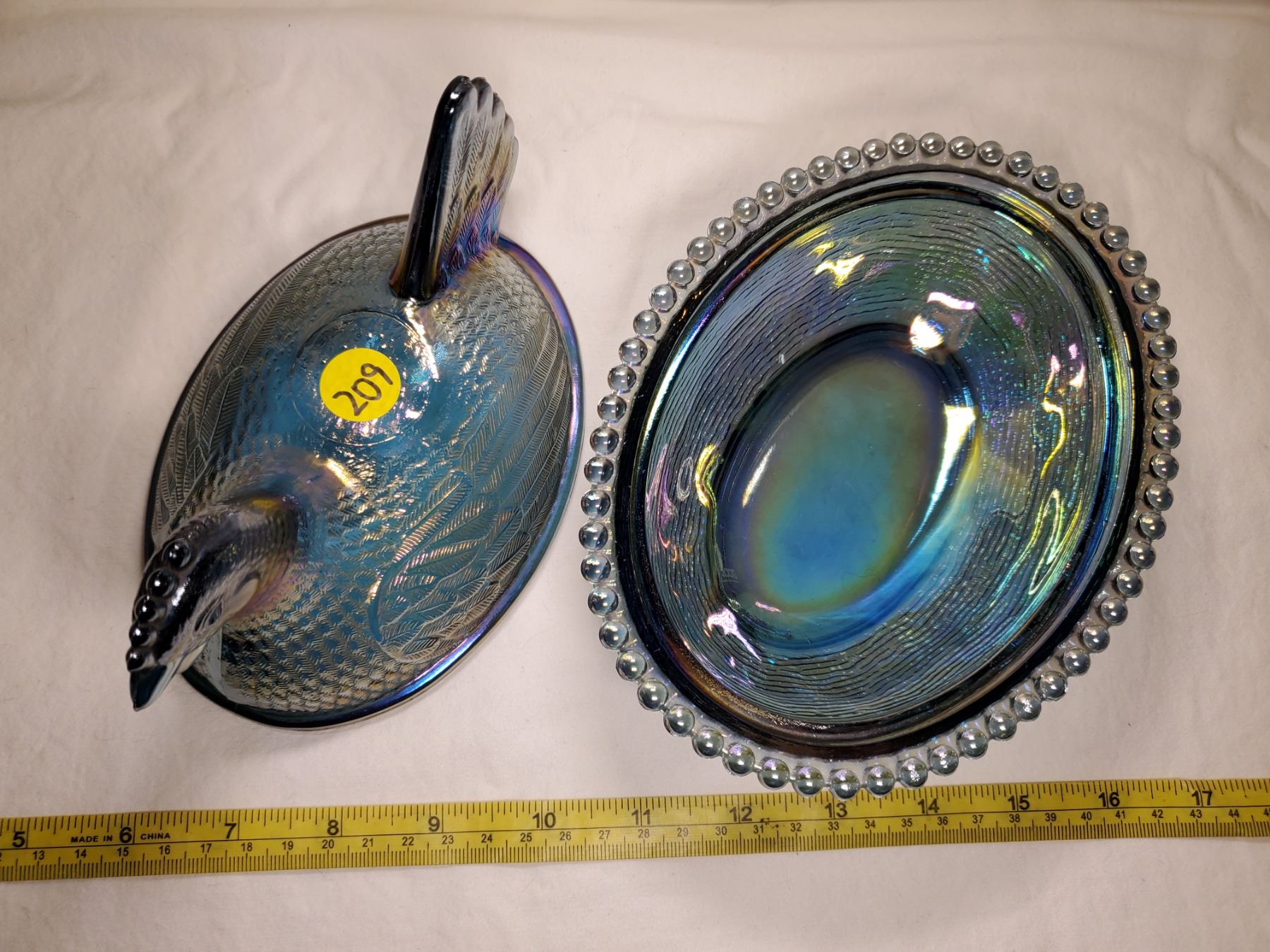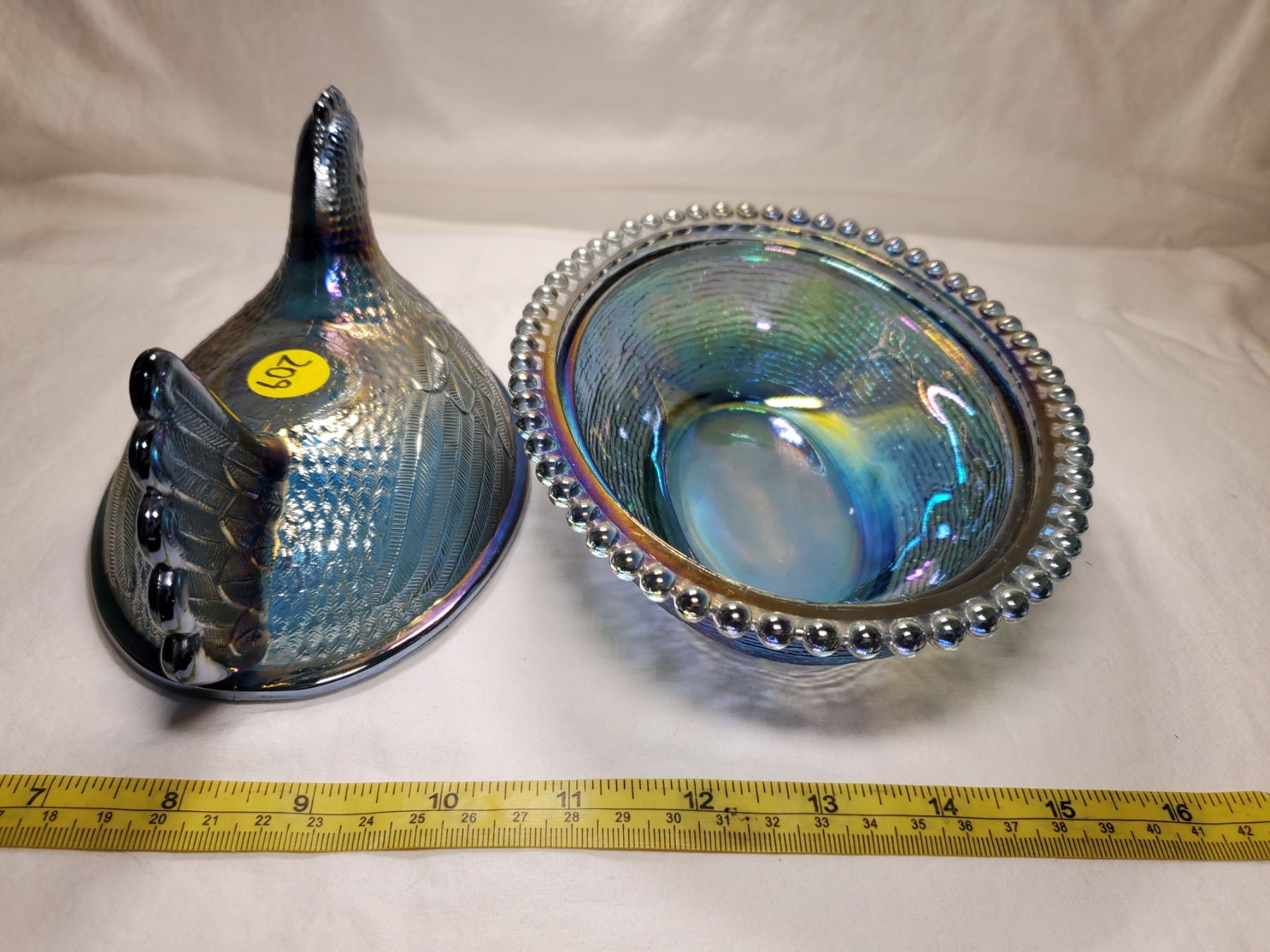 Indiana Glass Blue Carnival Glass Hen on Nest