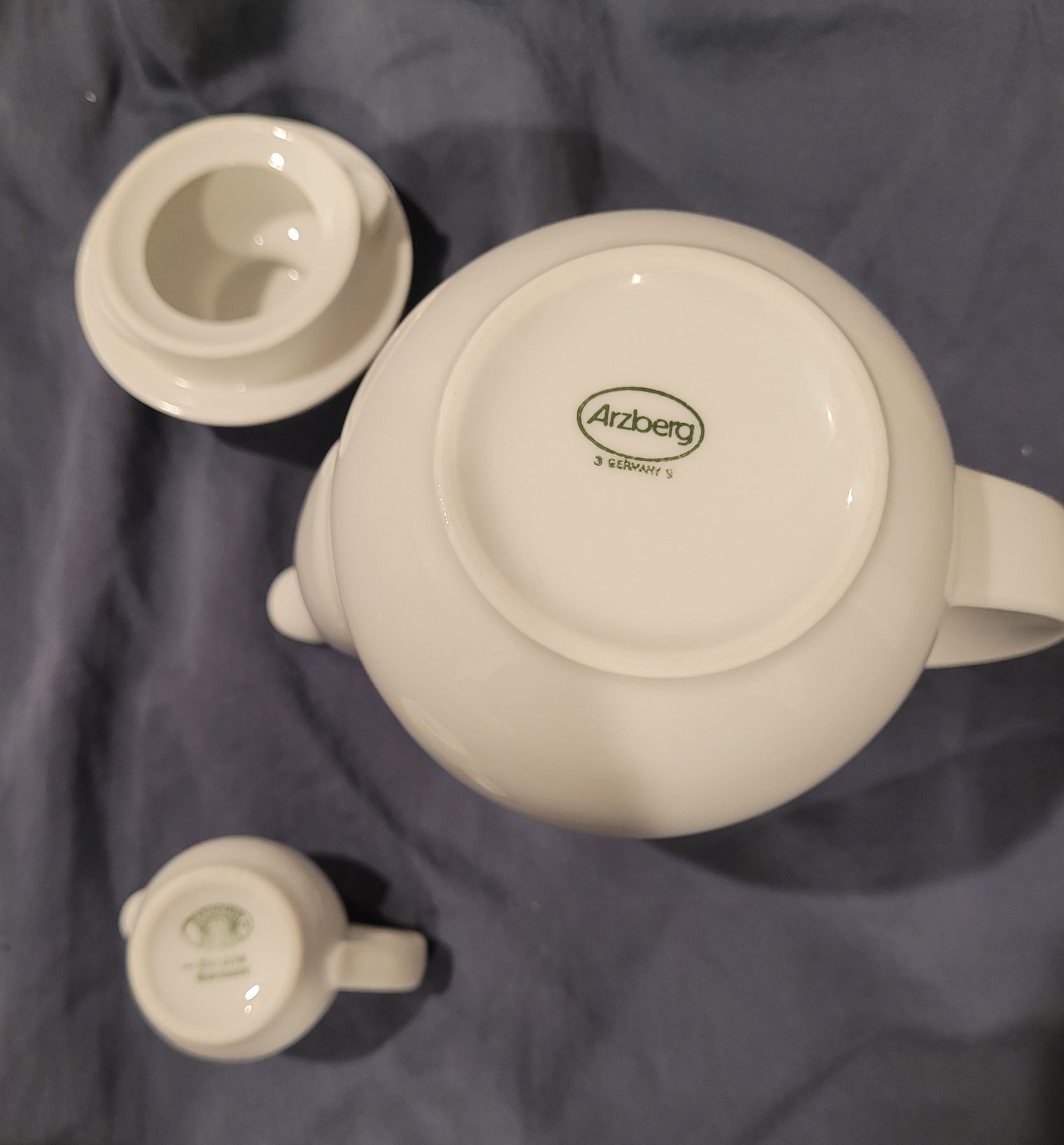 Individual coffee/tea/hot chocolate 4 1/2" tall pot with individual cream pitcher-made in Germany