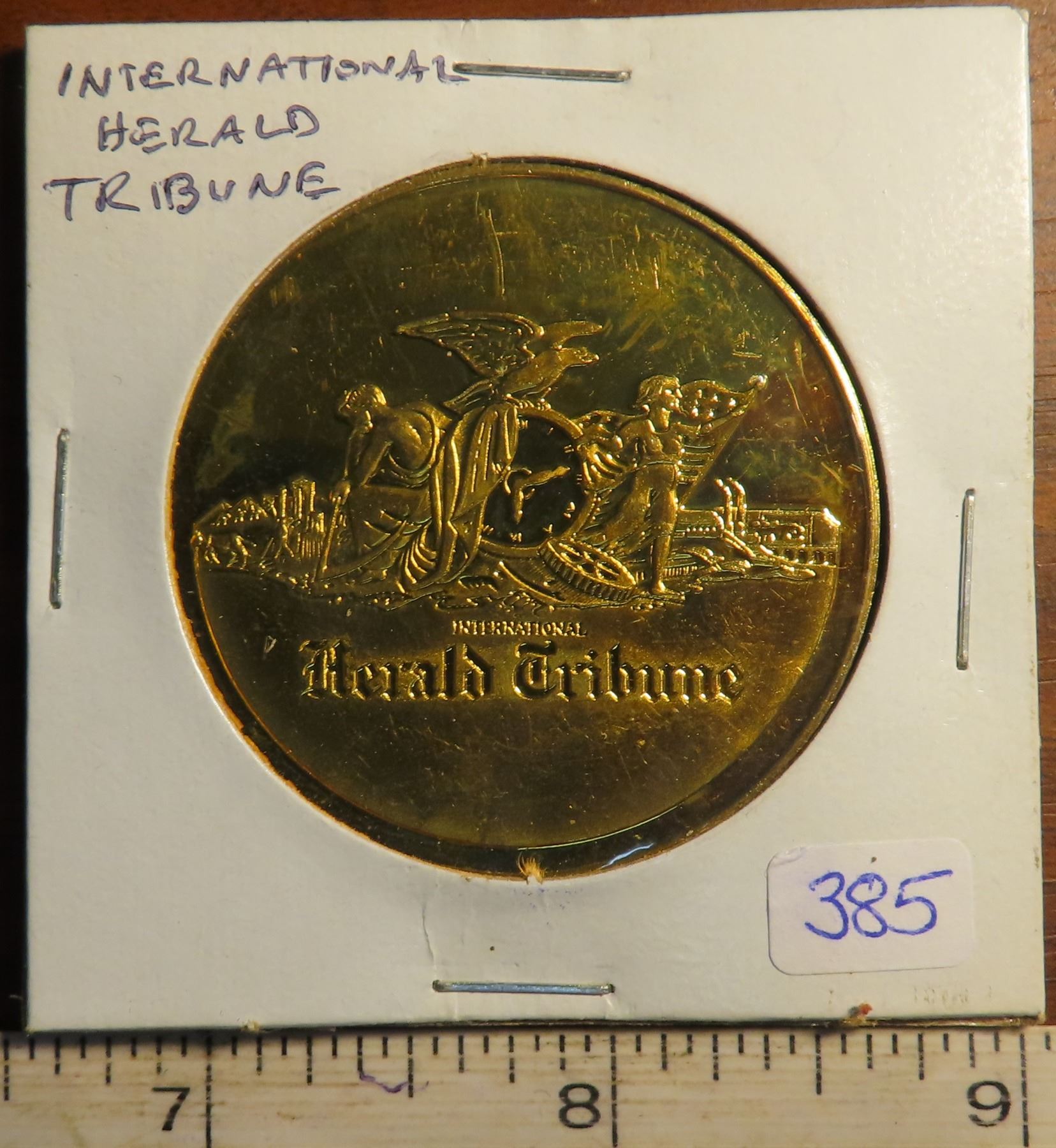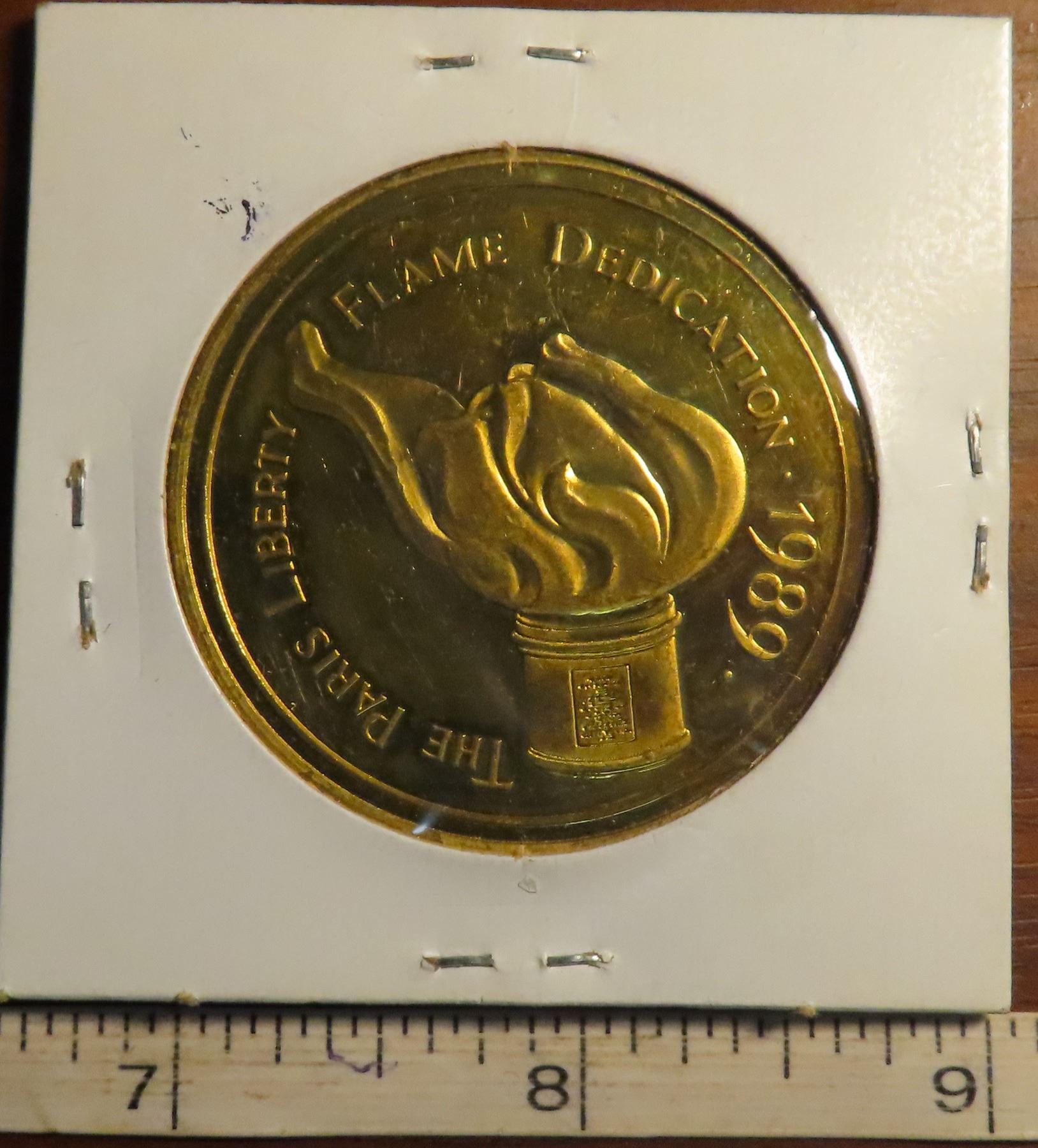 International Herald Tribune medal with The Paris Liberty Flame Dedication 1989 reverse. BU.