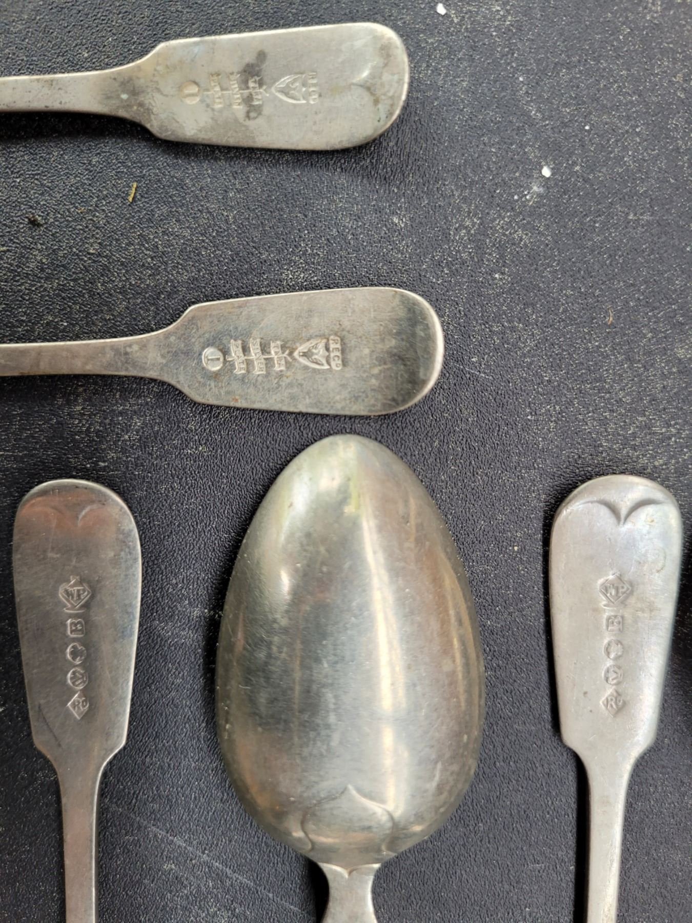 International Sterling Silver Salt & Pepper & 7 Spoons w/ Hallmark