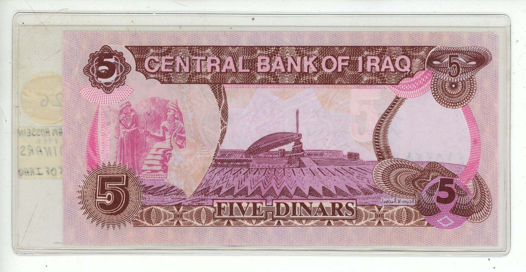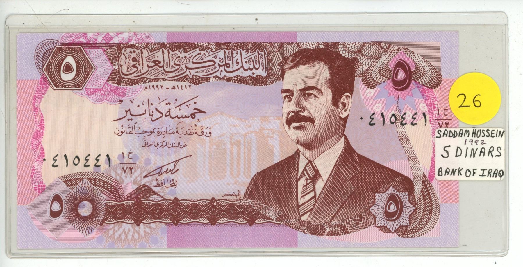 Iraq. Central Bank of Iraq. 1992 5 Dinars. Saddam Hussein. Uncirculated.