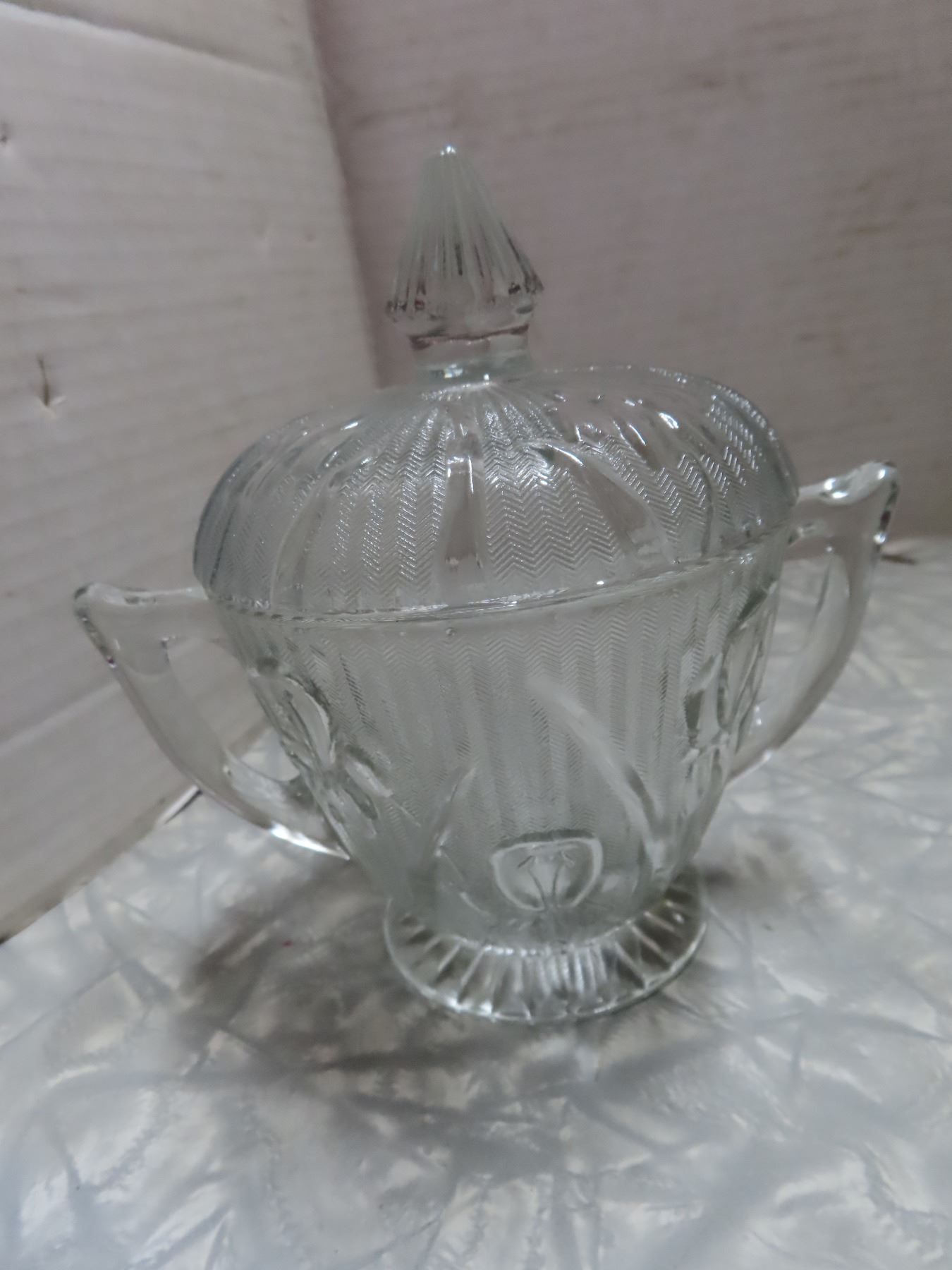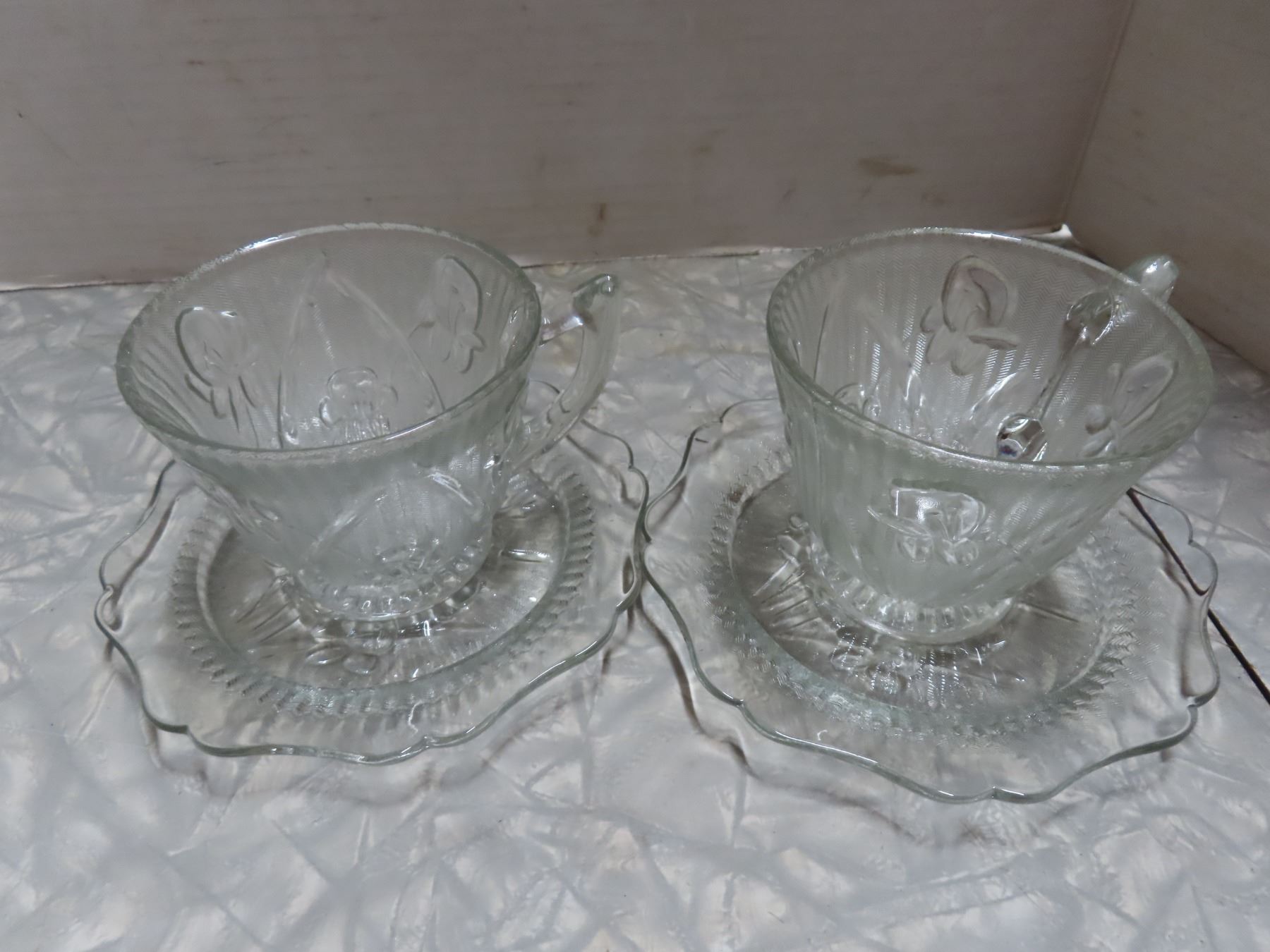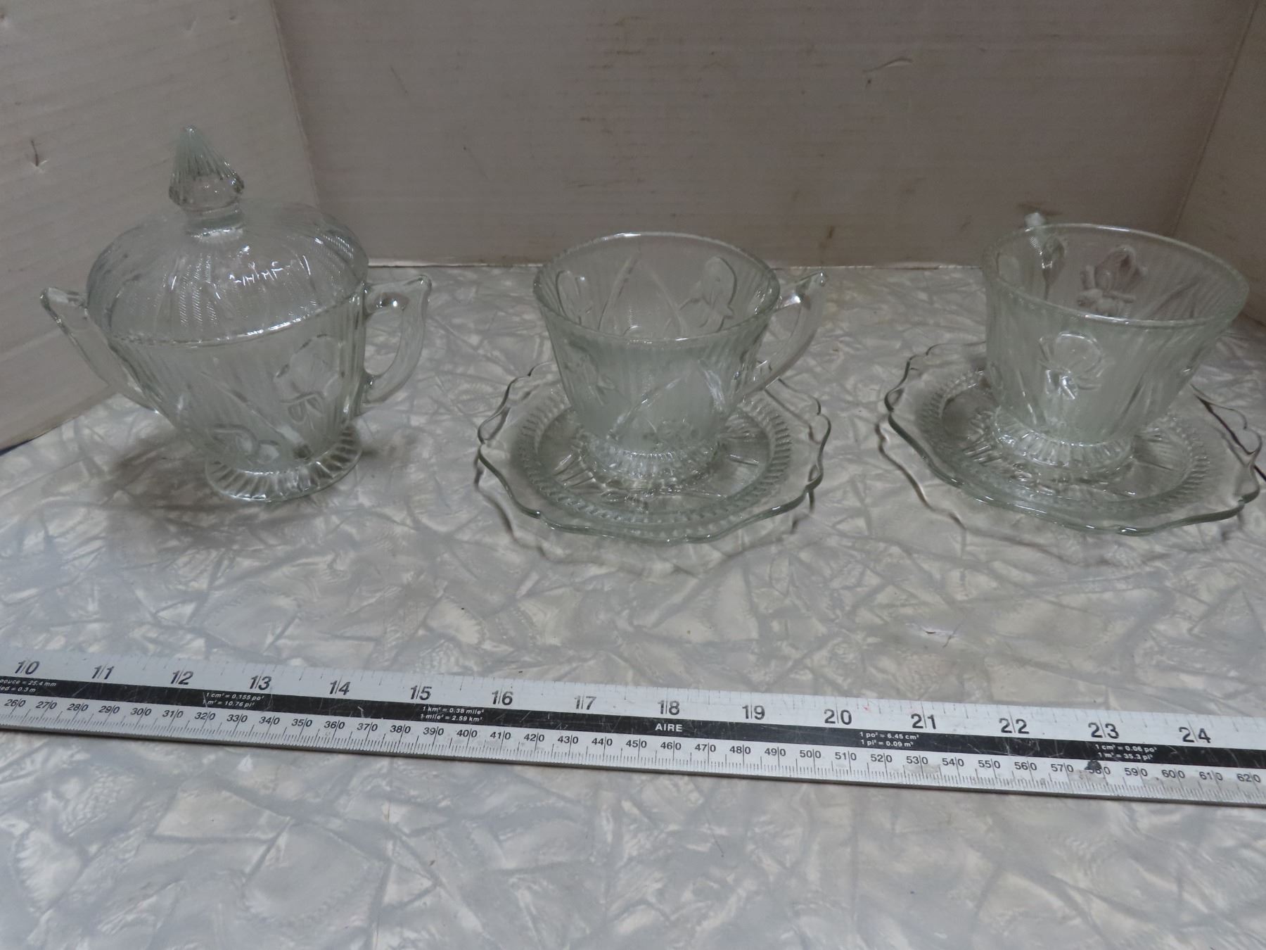 Iris and Herringbone 2 cups and saucers, sugar dish with lid