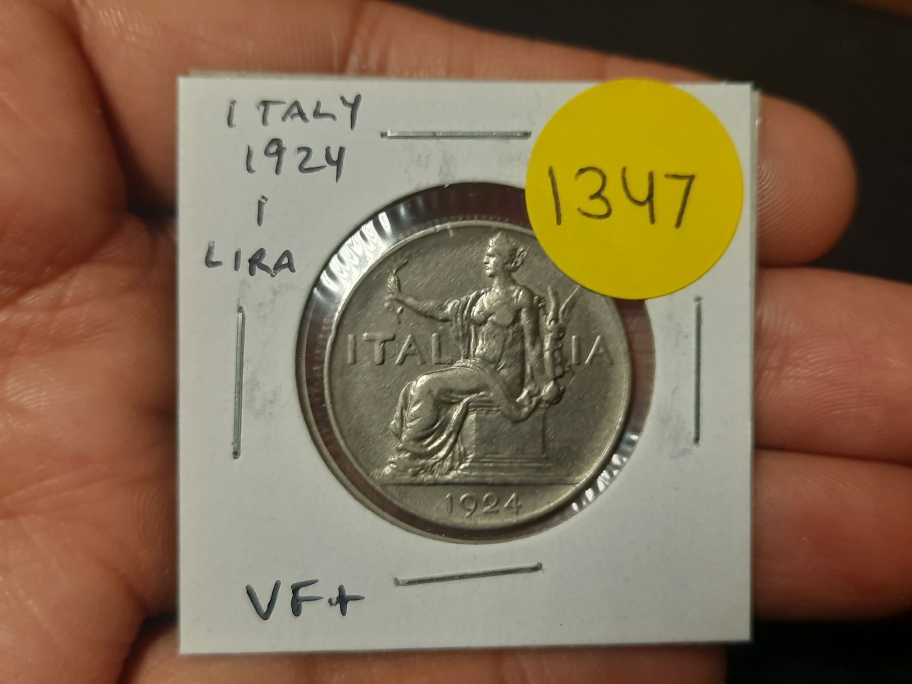 Italy. 1924 1 Lira. VF+.