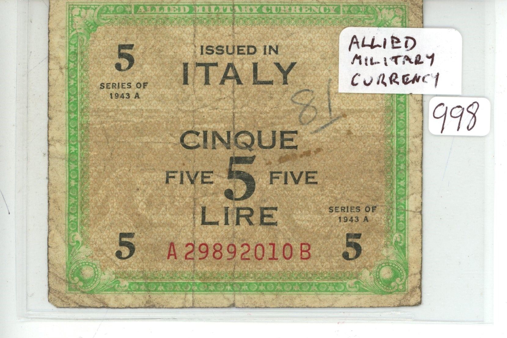 Italy. Allied Military Currency. 1943A 5 Lire. VG.