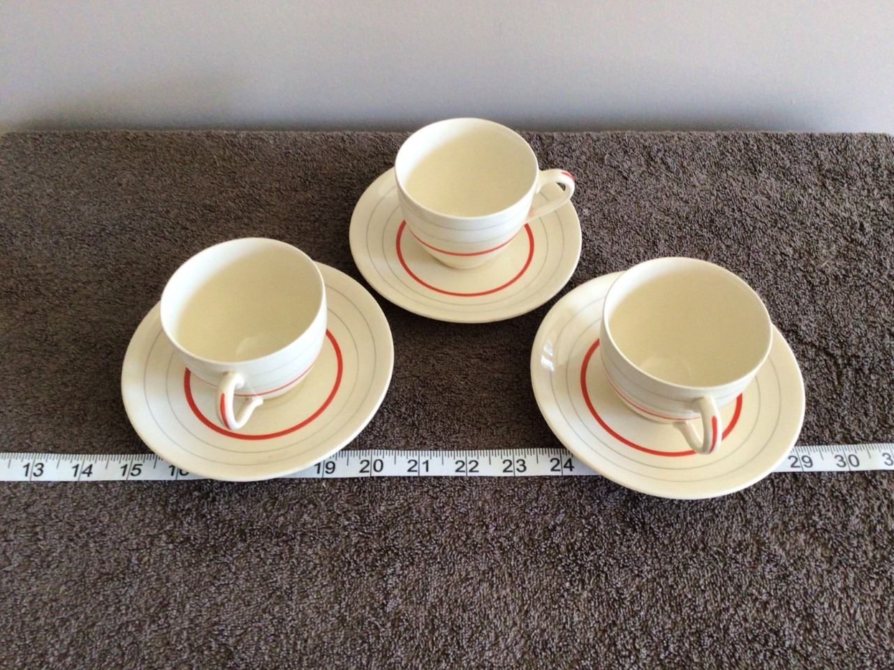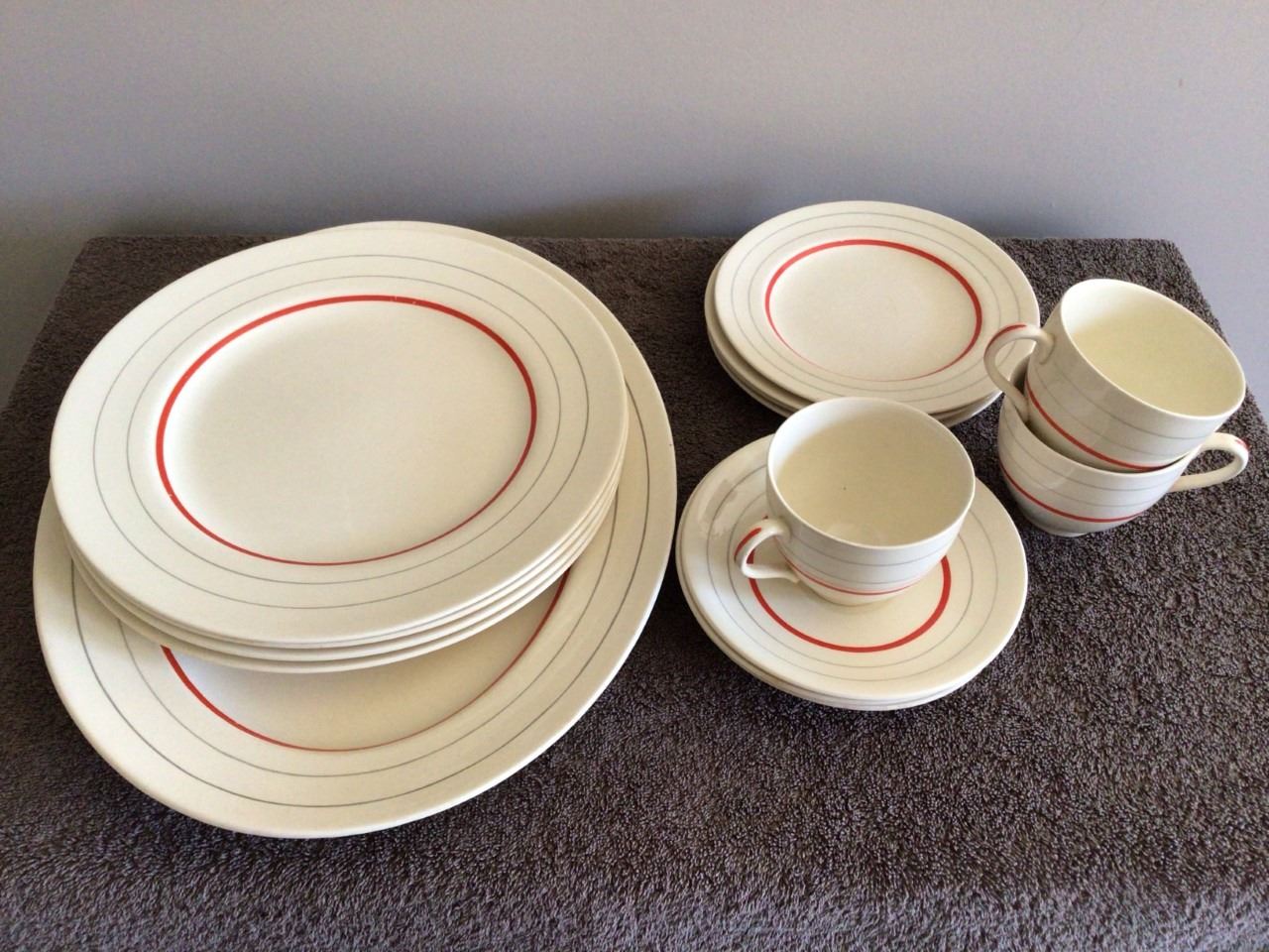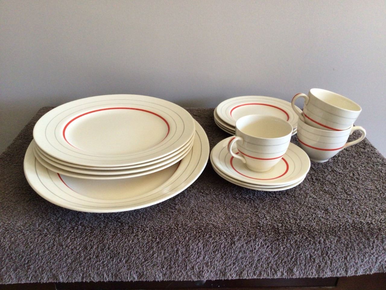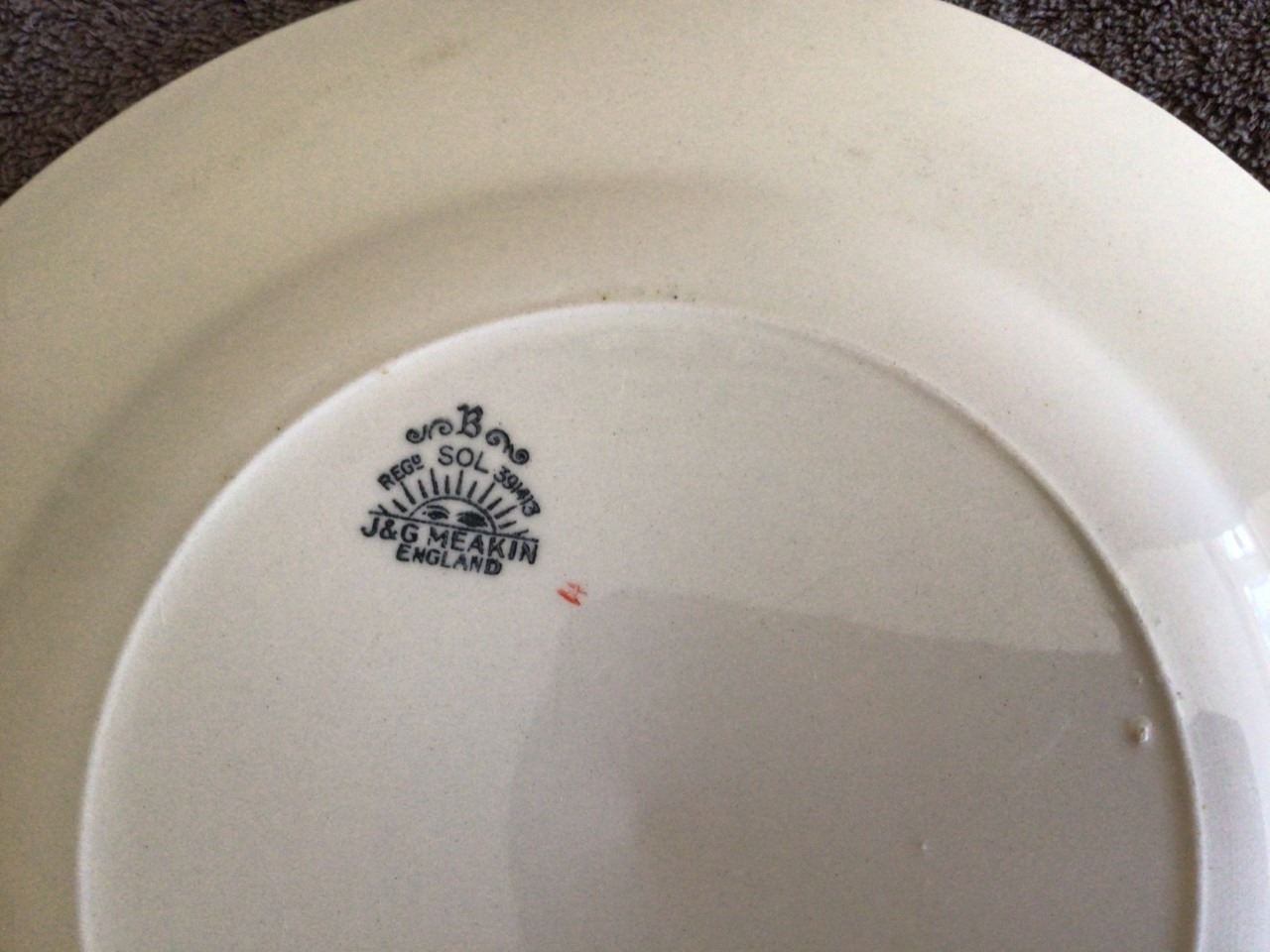 J&G Meakin "SOL" dishes, 1 14" platter, 4 dinner plates, 4 small plates, 3 cups/saucers - 8 photos