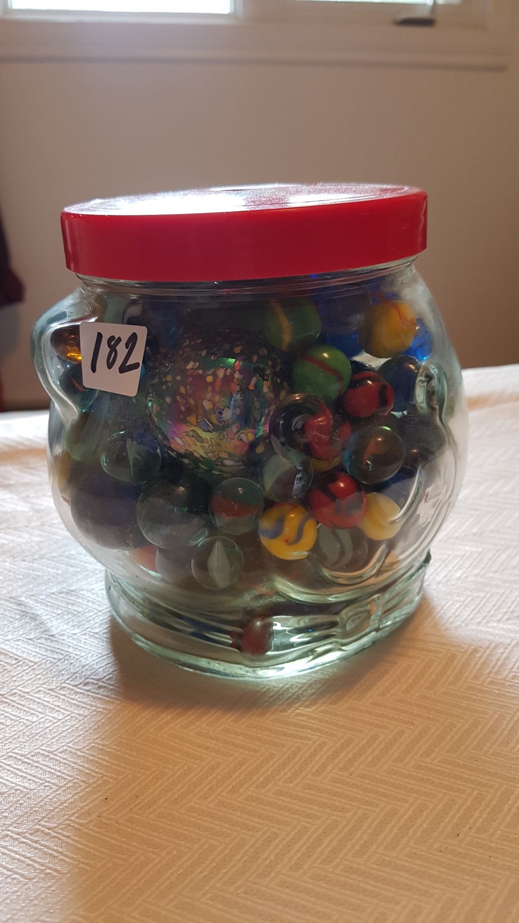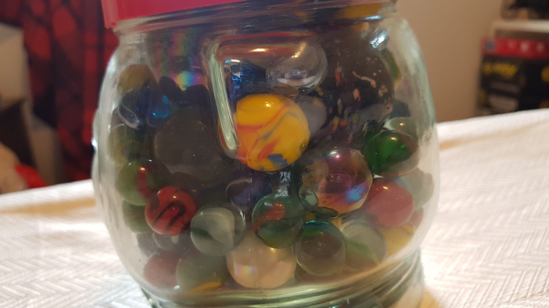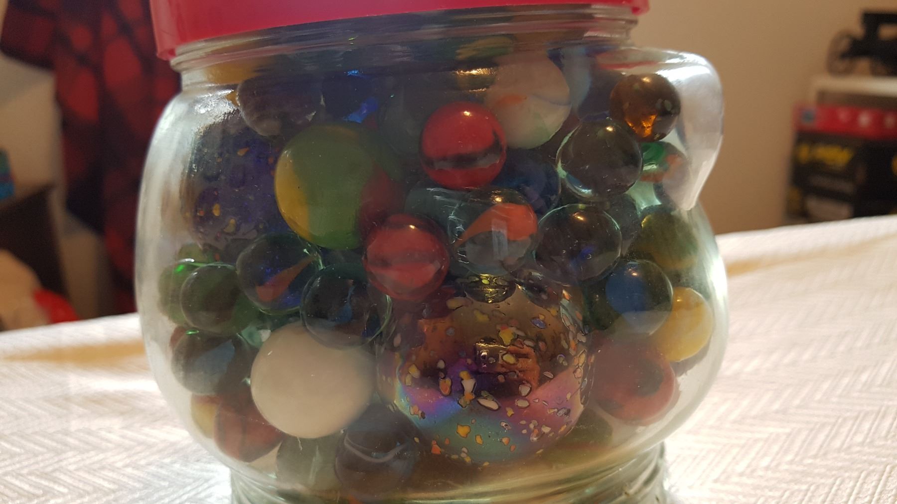 JAR OF UNUSUAL MARBLES