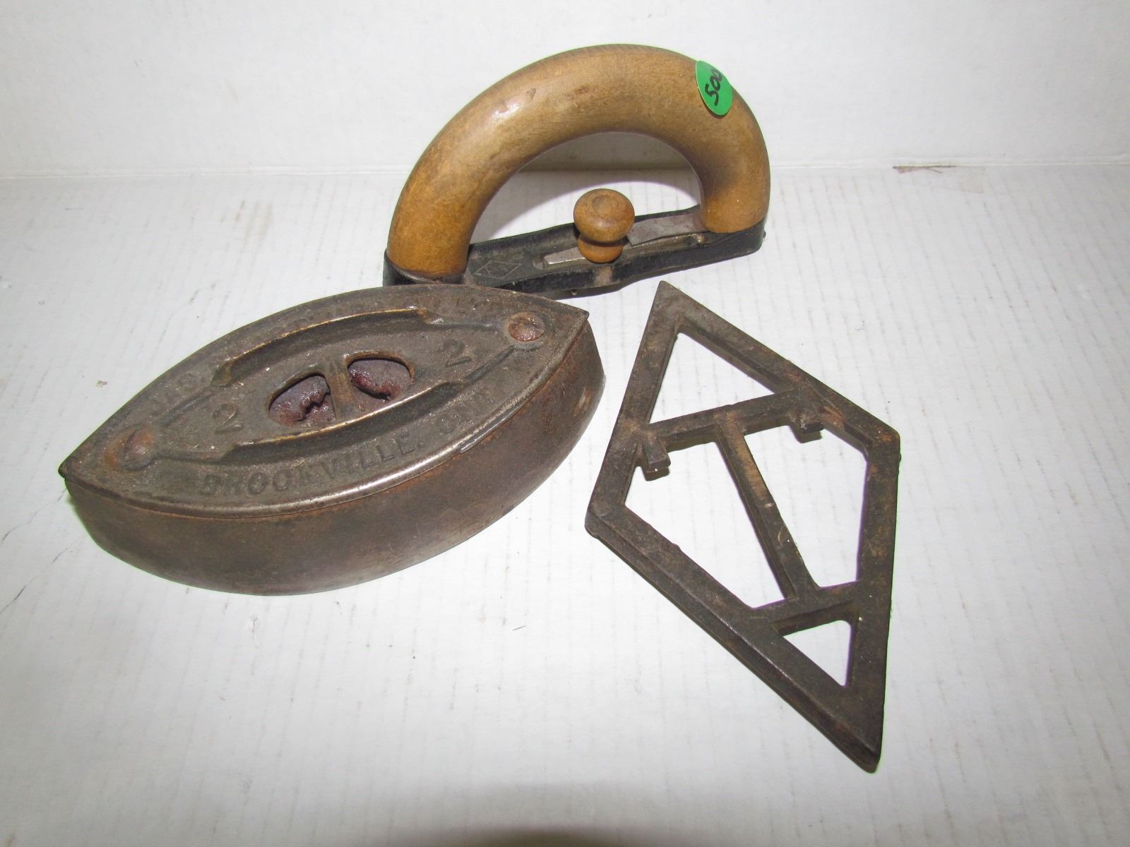 JAS. SMART MFG CO LTD. IRON W/HANDLE & TRIVET STAND