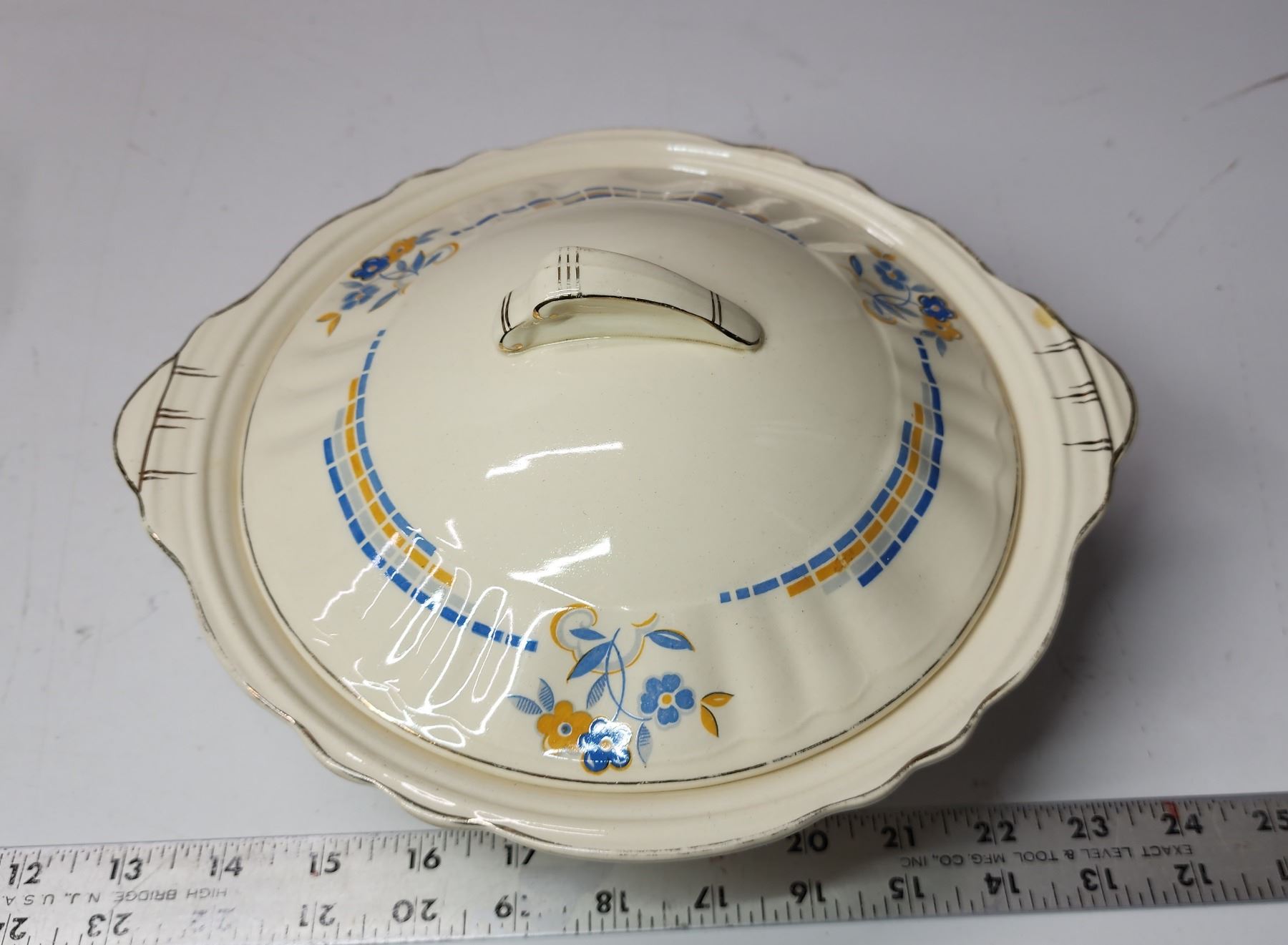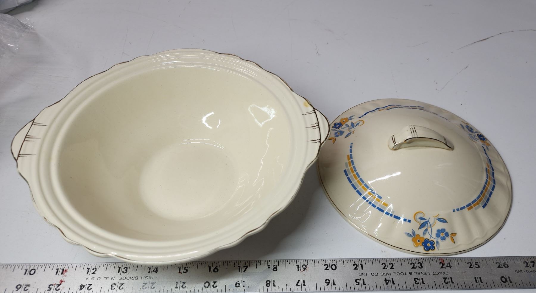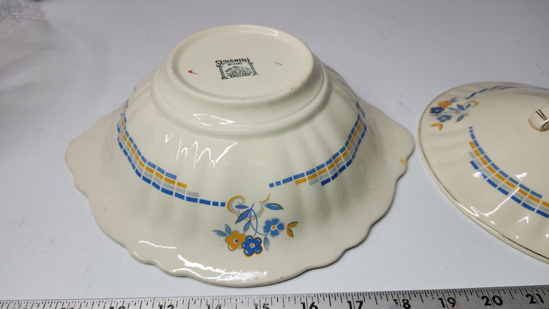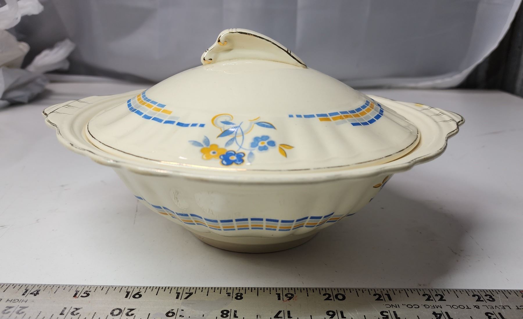 JG Meakiin Eng. Covered Bowl Vintage 1910 "Sunshine" No chips