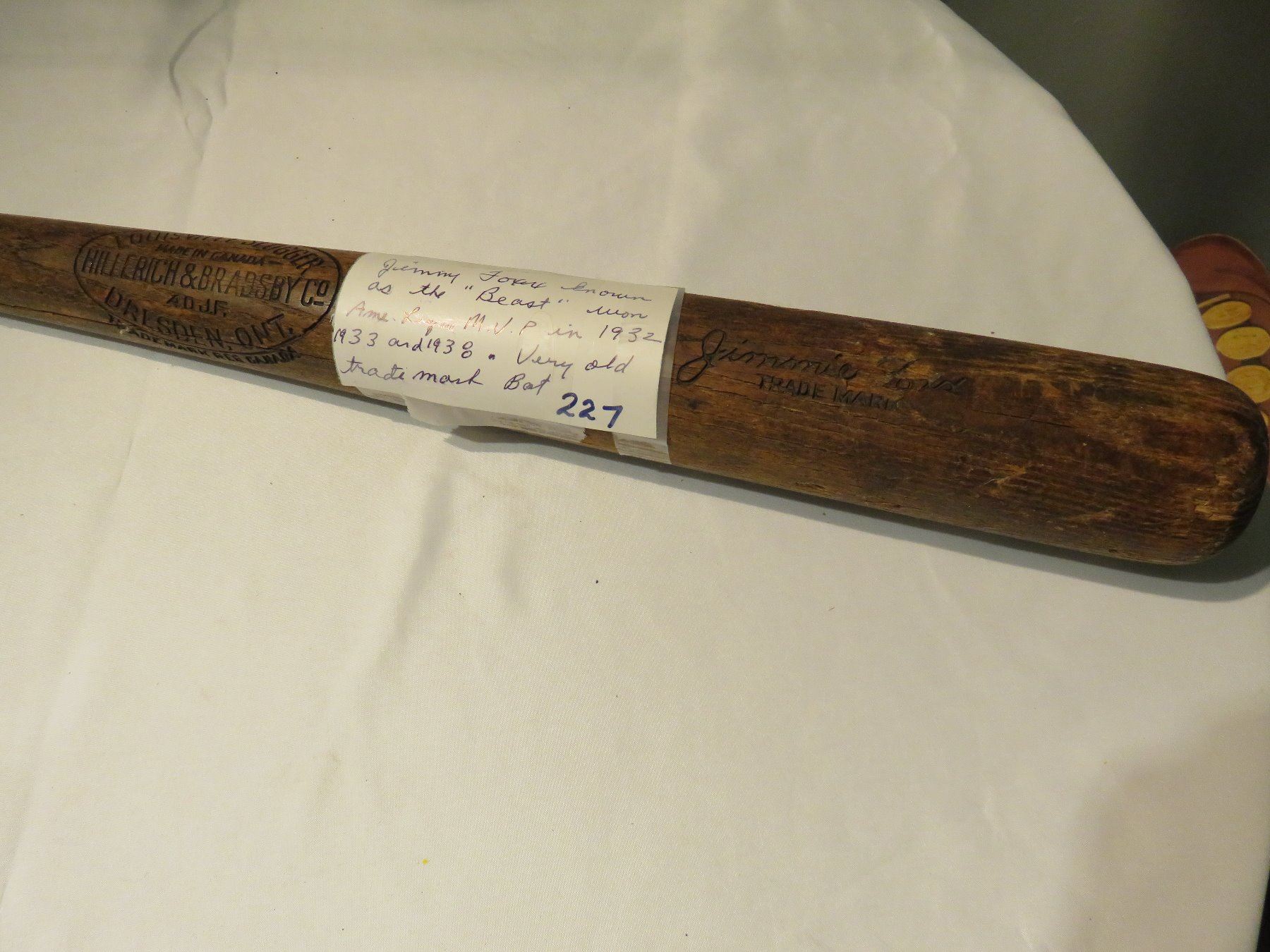 JIMMIE FOXX BAT EARLY 30'S KNOWN AS 'THE BEAST' WON MVP 1932-33-38 JOINED MAJORS 1925