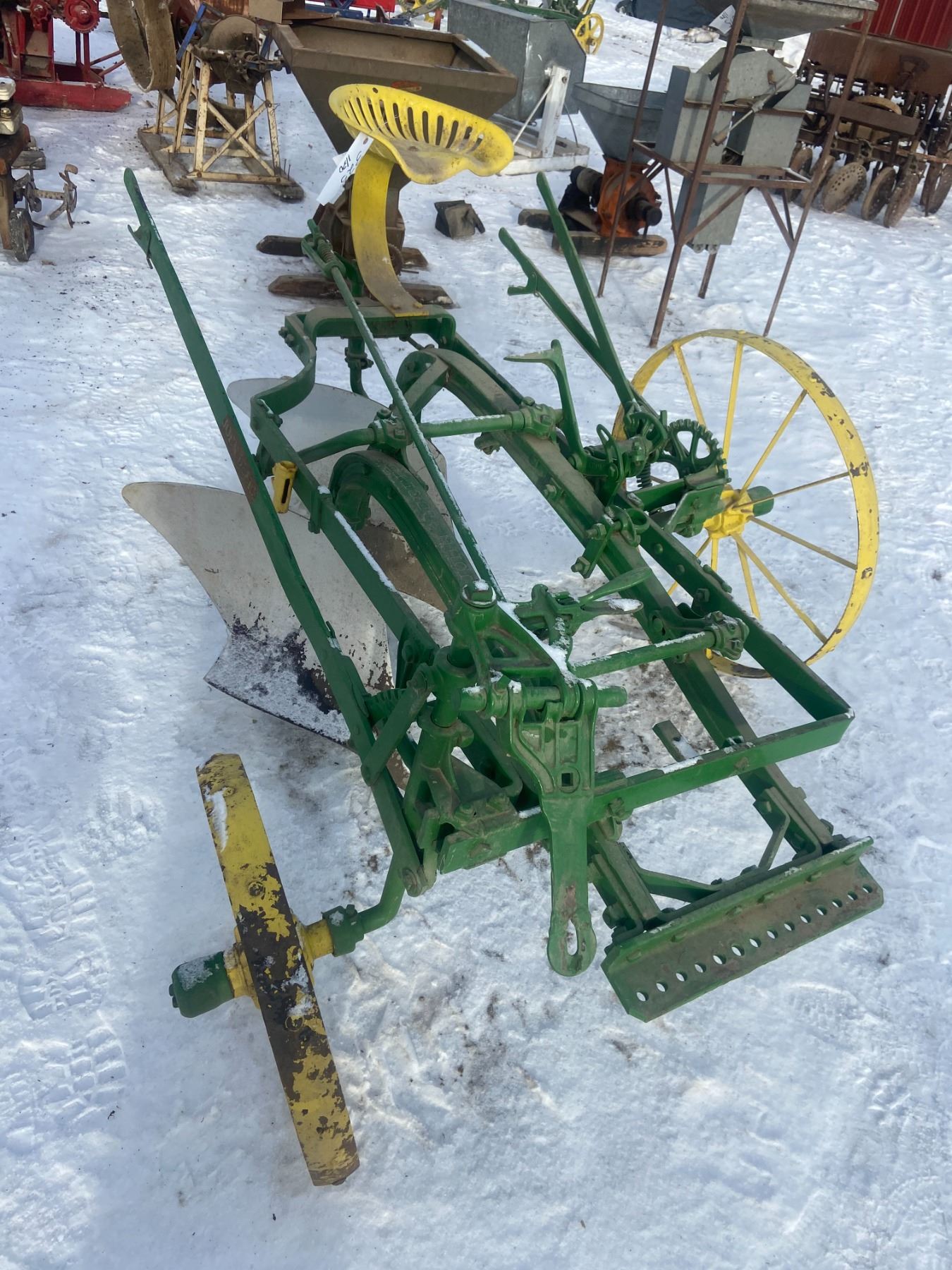 JOHN DEERE HORSE DRAWN 2 FURROW PLOW, HAS CAST SEAT