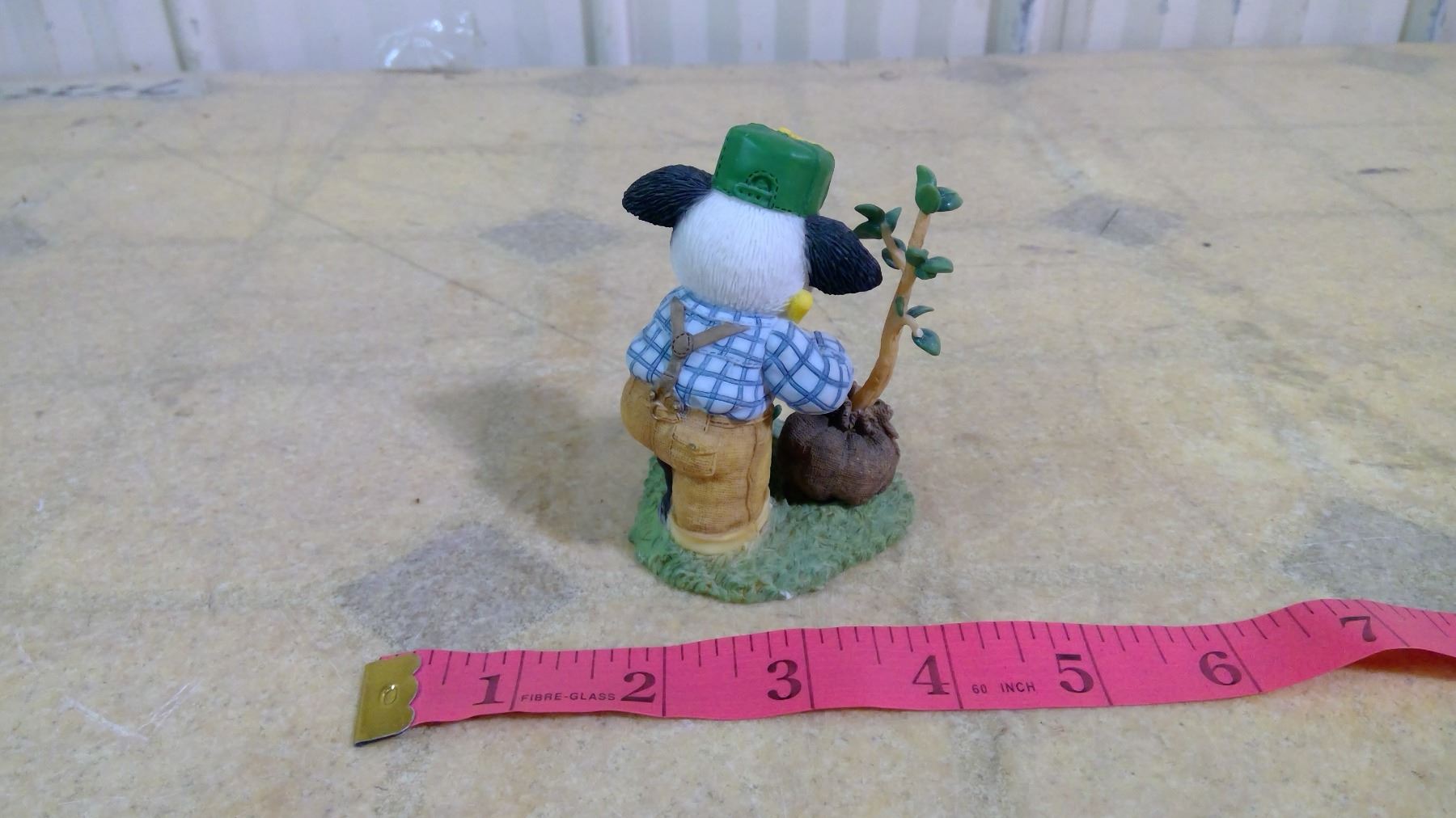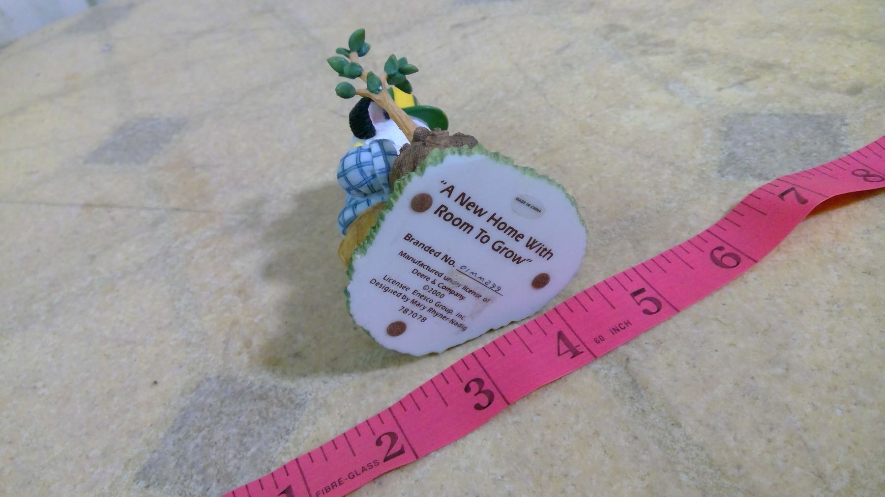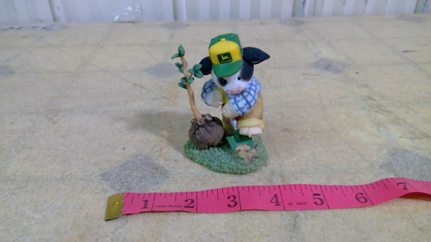 JOHN DEERE ORNAMENT OF BLACK AND WHITE CALF SHOVELLING "A NEW HOME WITH ROOM TO GROW"