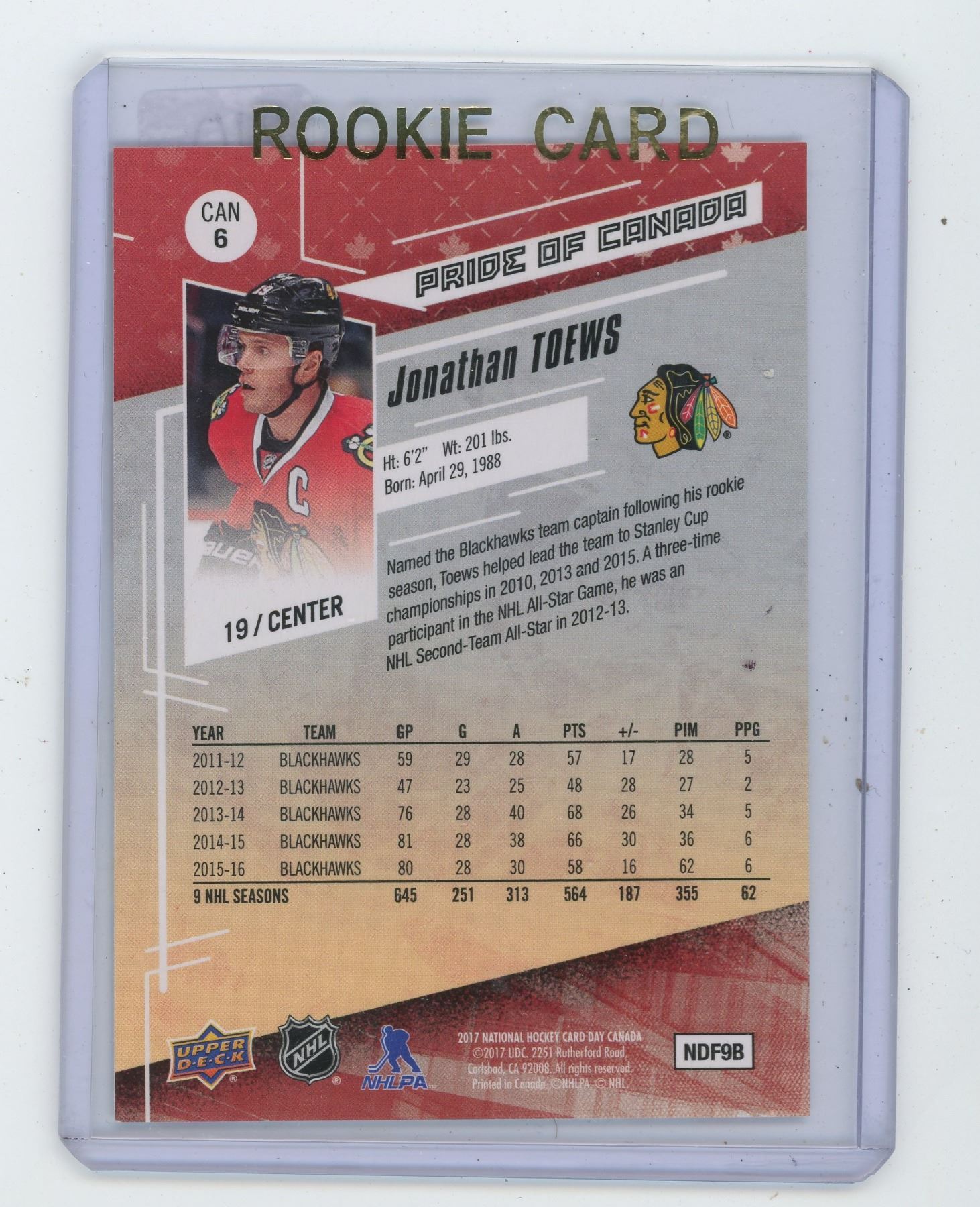 JONATHAN TOEWS. CHICAGO BLACKHAWKS, NHL HOCKEY CARD. 2012-2013 UPPER DECK. DECK GEM UNC