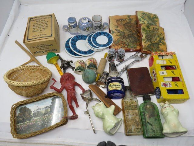 JUNK DRAWER LOT (SALT & PEPPER SHAKER, BOTTLE CAPS, POKER CHIPS, ETC)