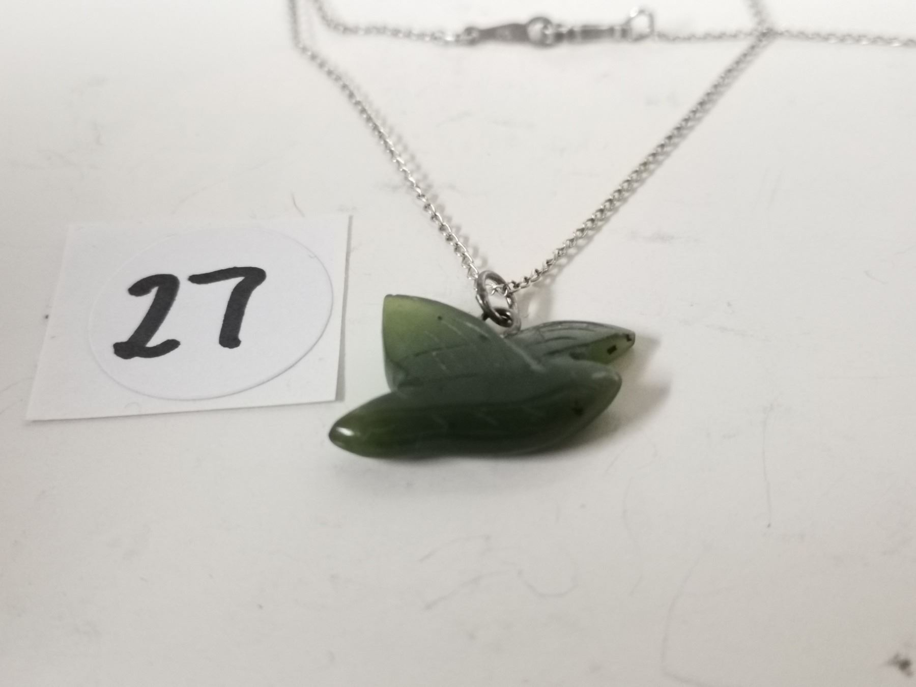 Jade Bird pendant on sterling silver necklace