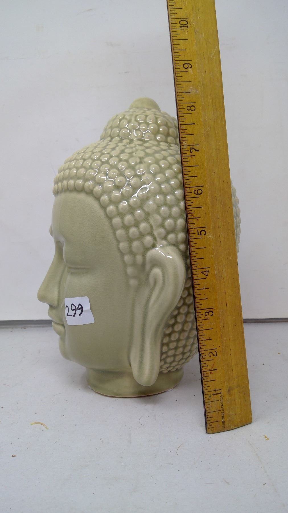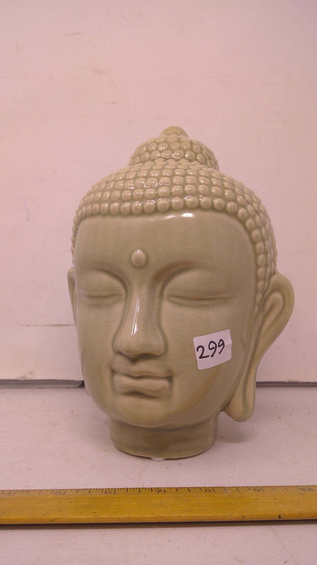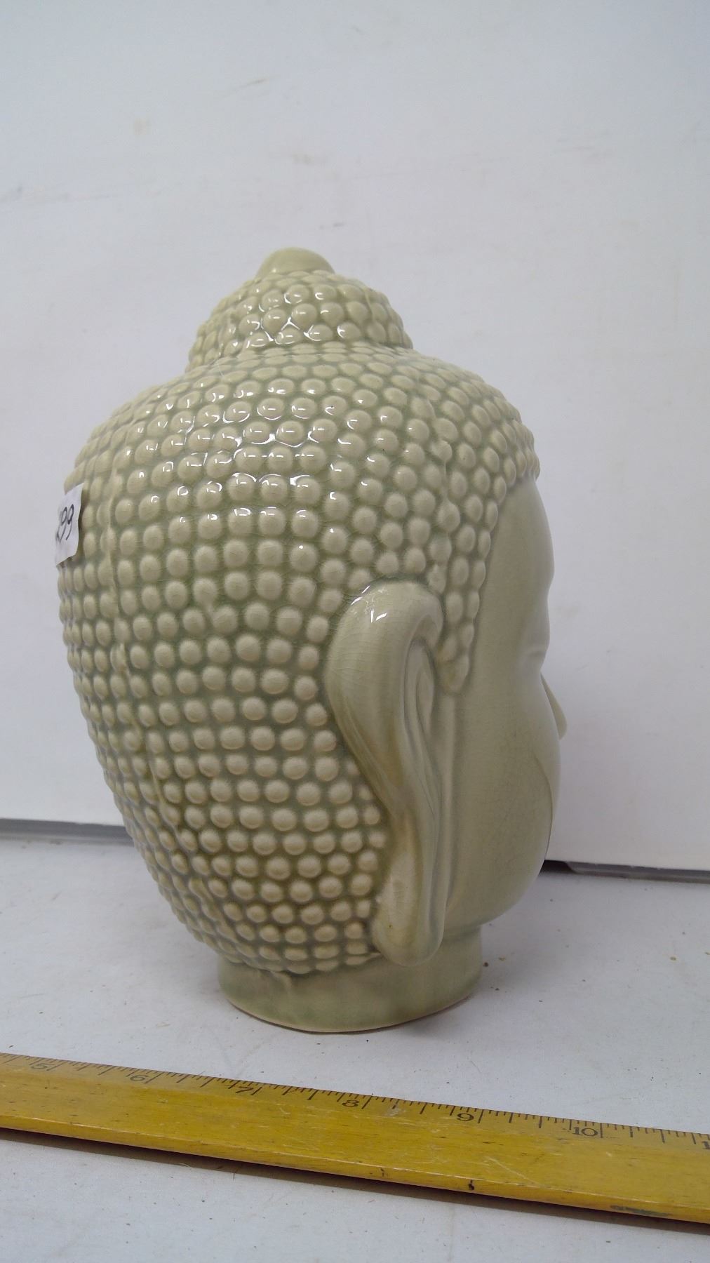 Jade Celadon Pottery Buddha Head - 7" Crackle Glaze