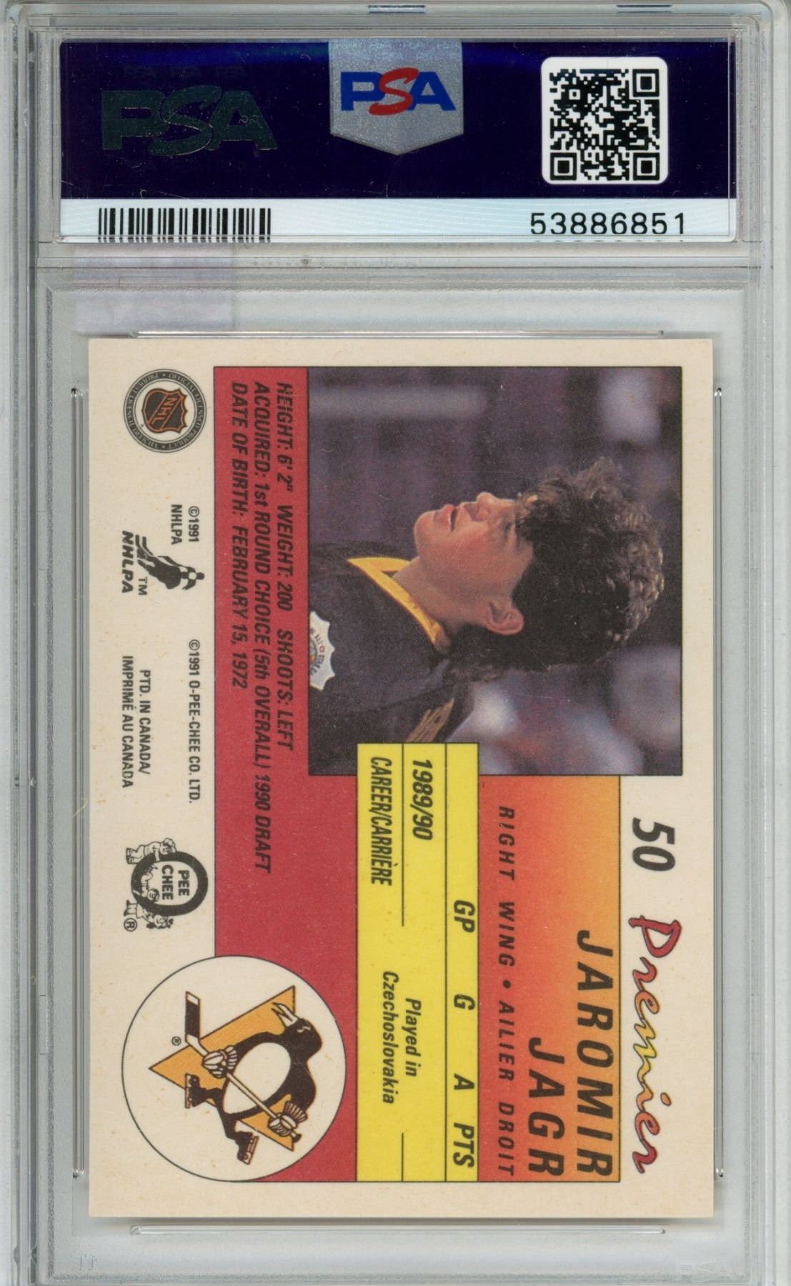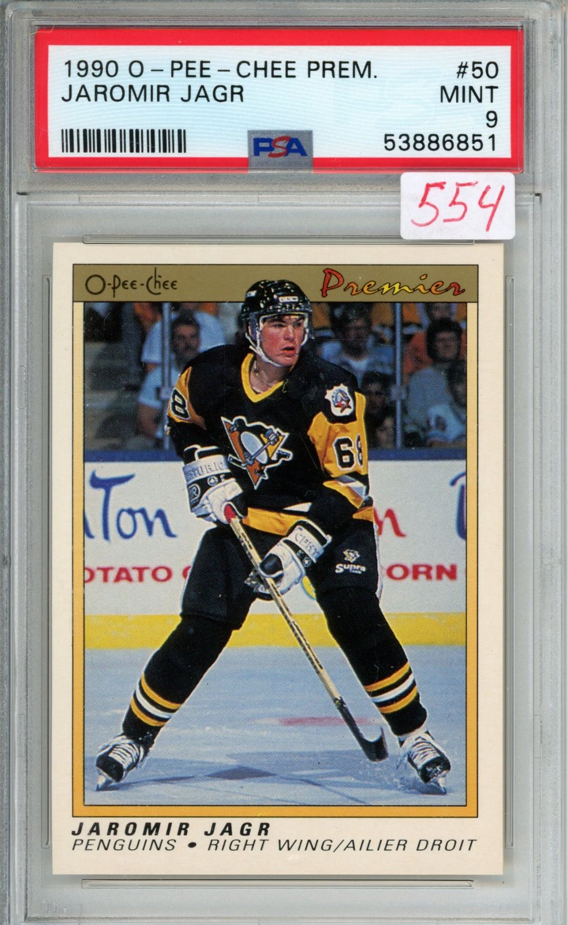 Jagr Jaromir Rookie card PSA9 1990-91 OPC Premier #50