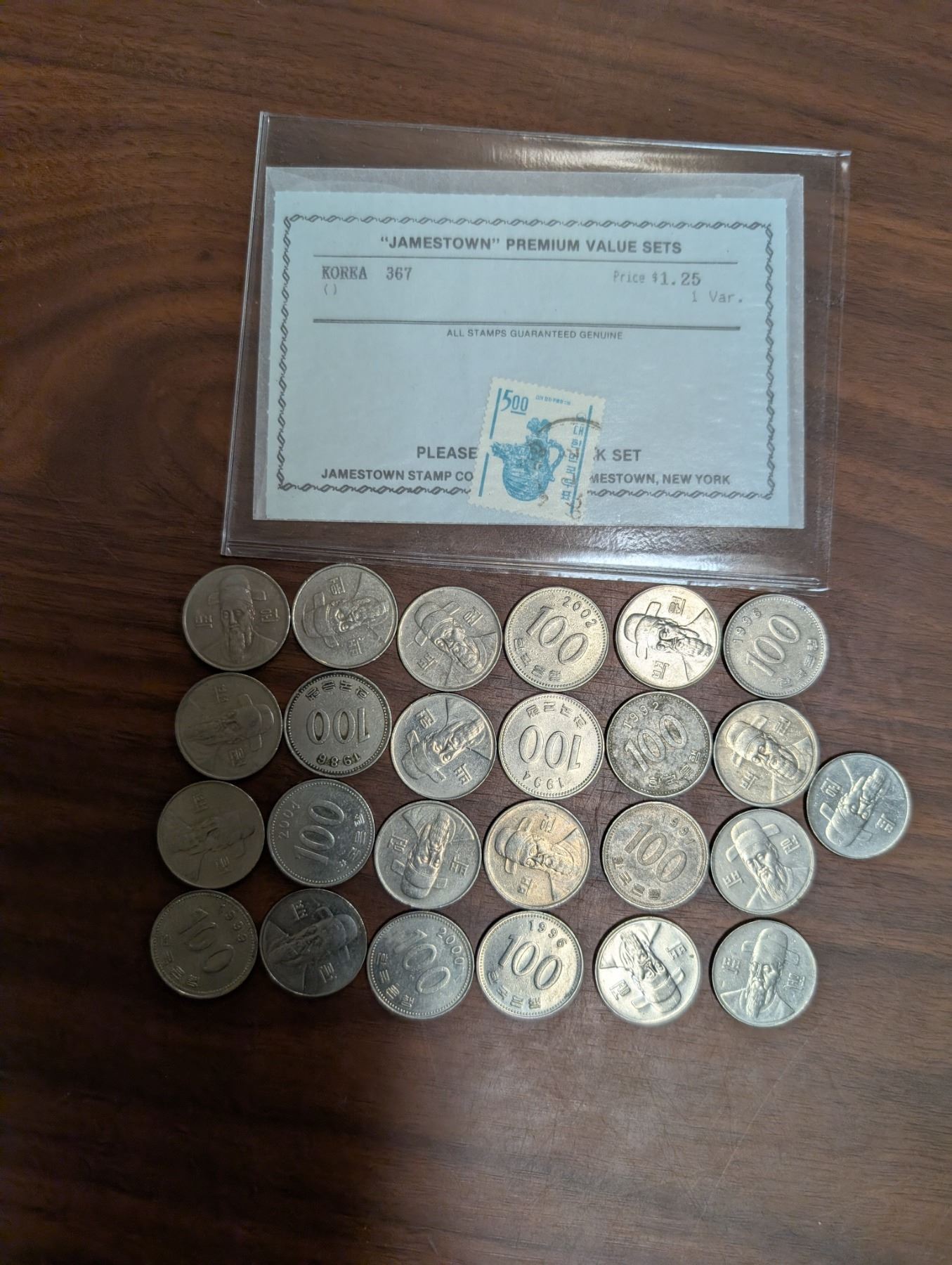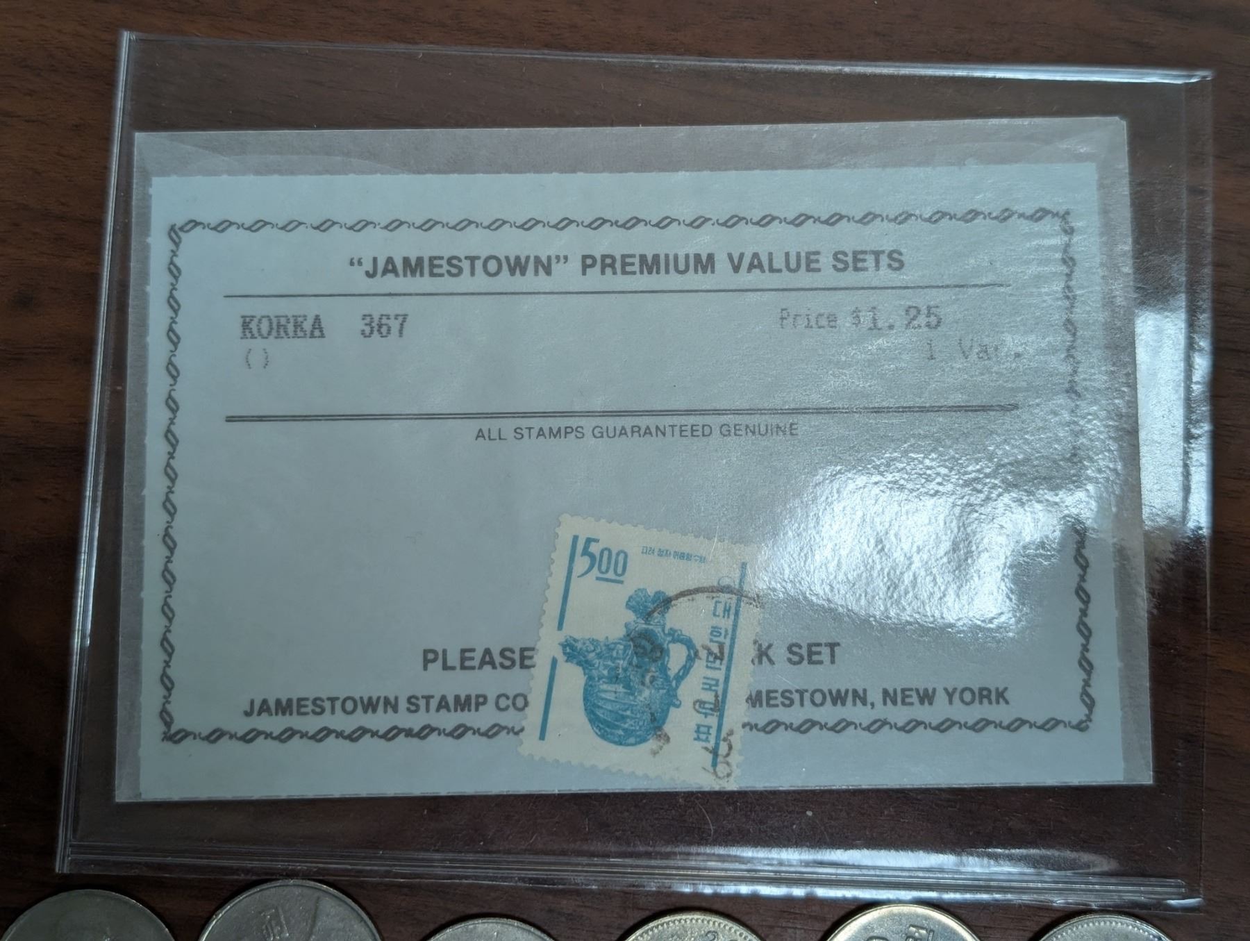 Jamestown Korea 367 Stamp and 1990s Korean Coins