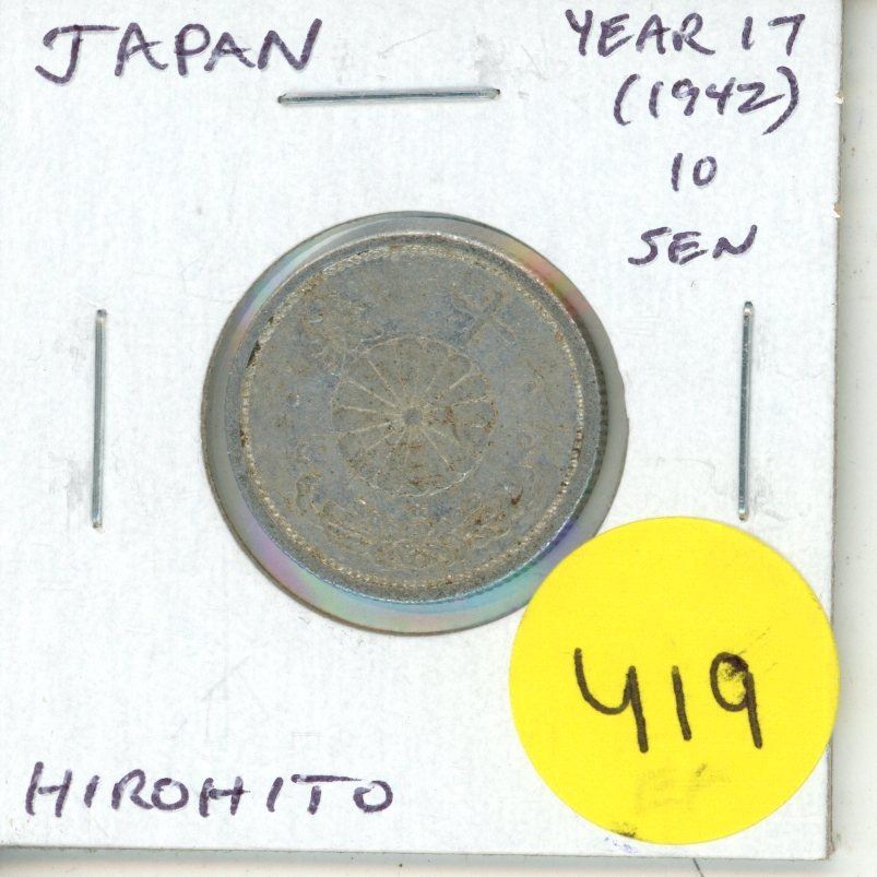 Japan. Year 17 (1942) 10 Sen. Emperor Hirohito. EF.