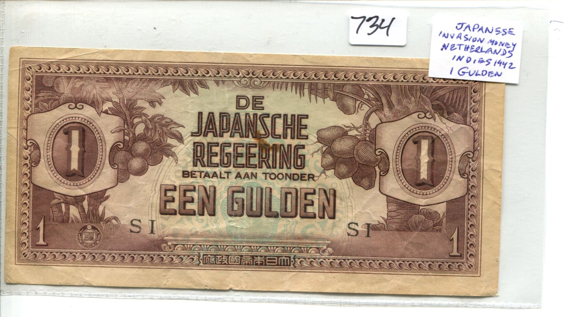 Japanese Invasion Money for the Netherlands Indies (now Indonesia) 1942 1 Gulden. VF