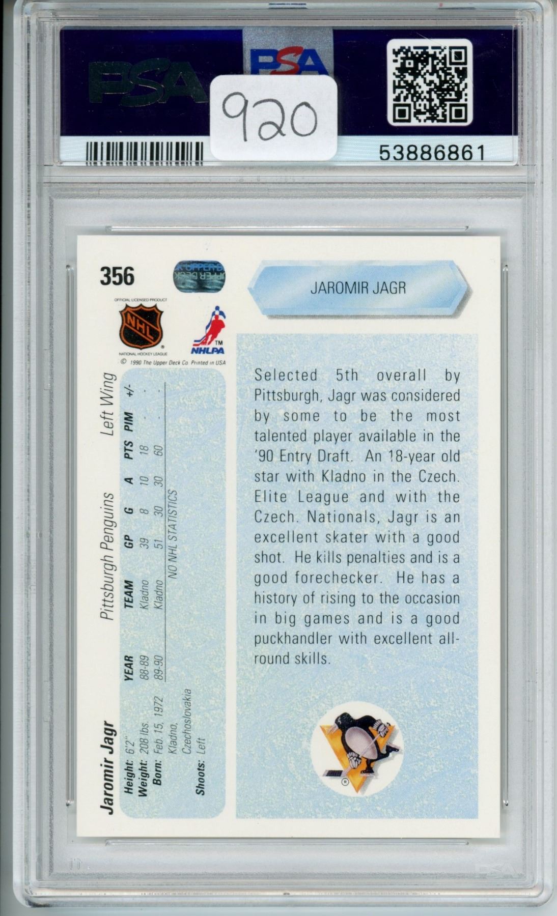 Jaromir Jagr upper deck rookie card PSA 9