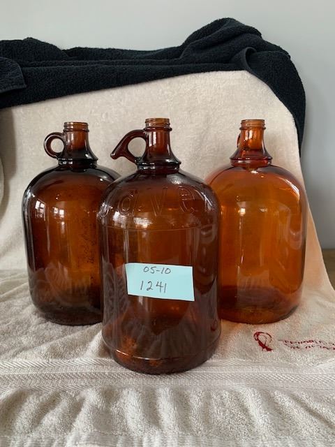 Javex jug and 2 160oz brown jugs