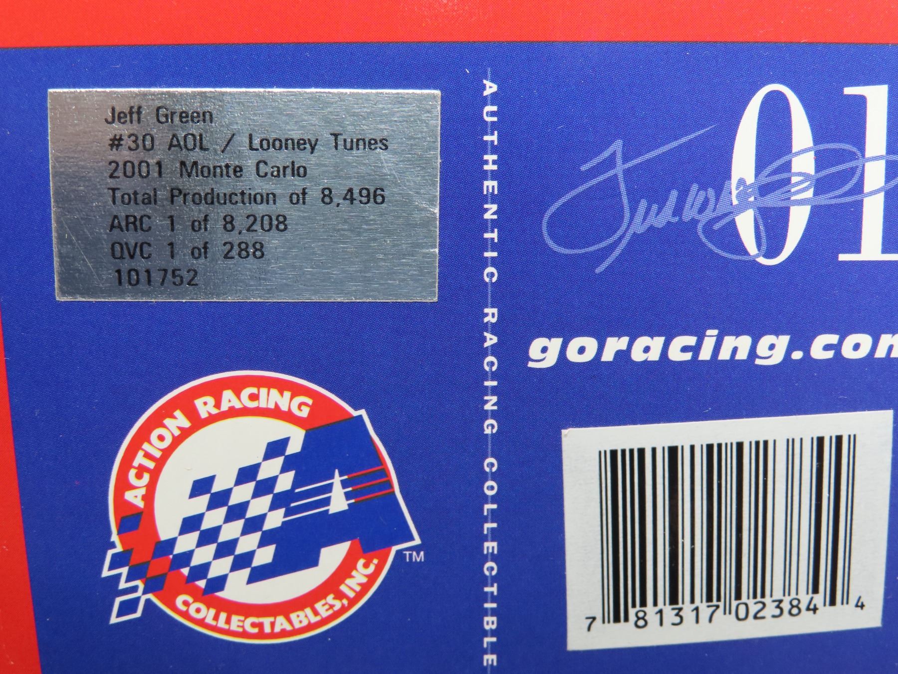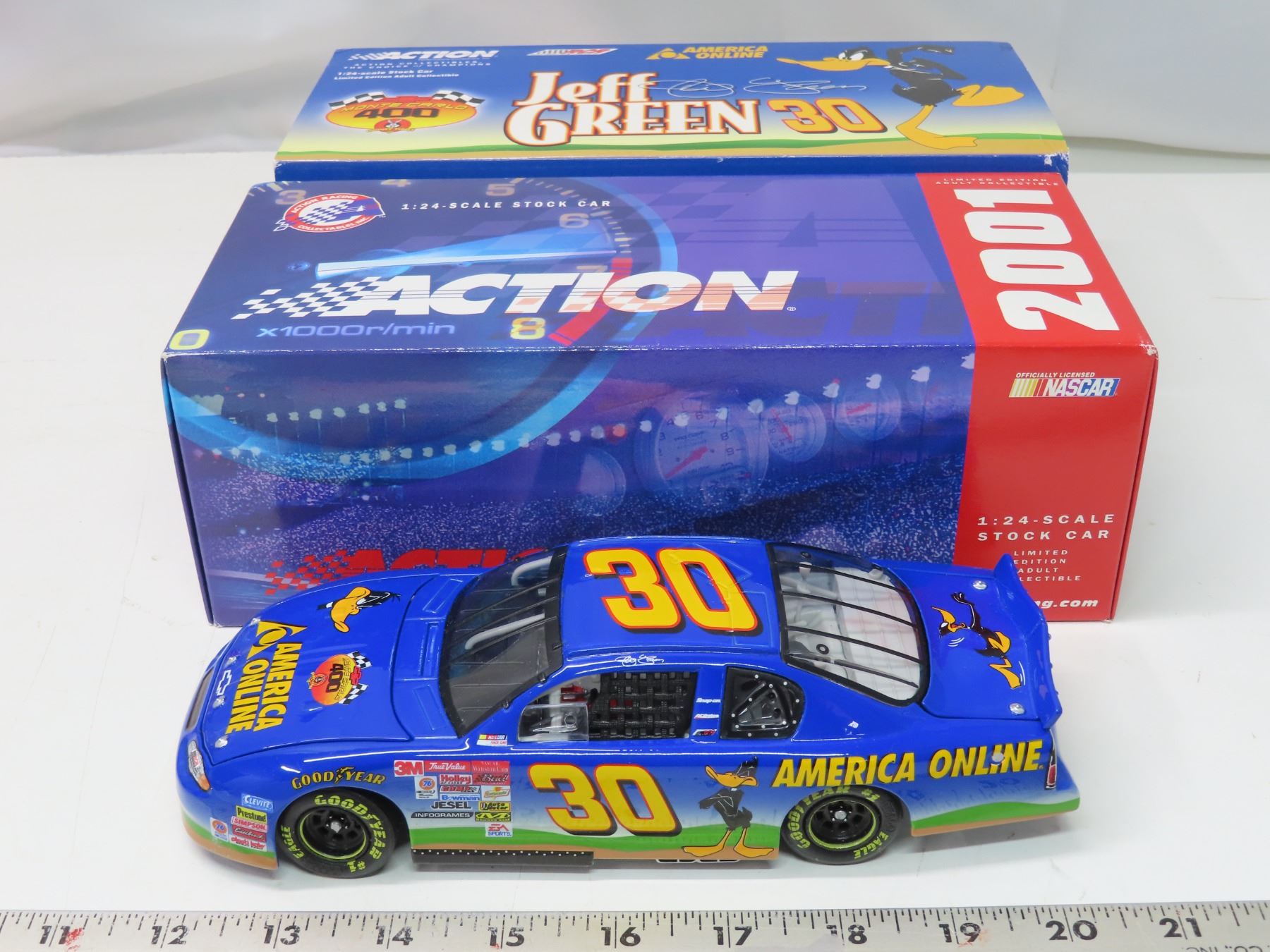 Jeff Green #30 AOL/Looney Tunes 2001 Monte Carlo 400 Looney Tunes 1:24 Scale stock car – Brand new