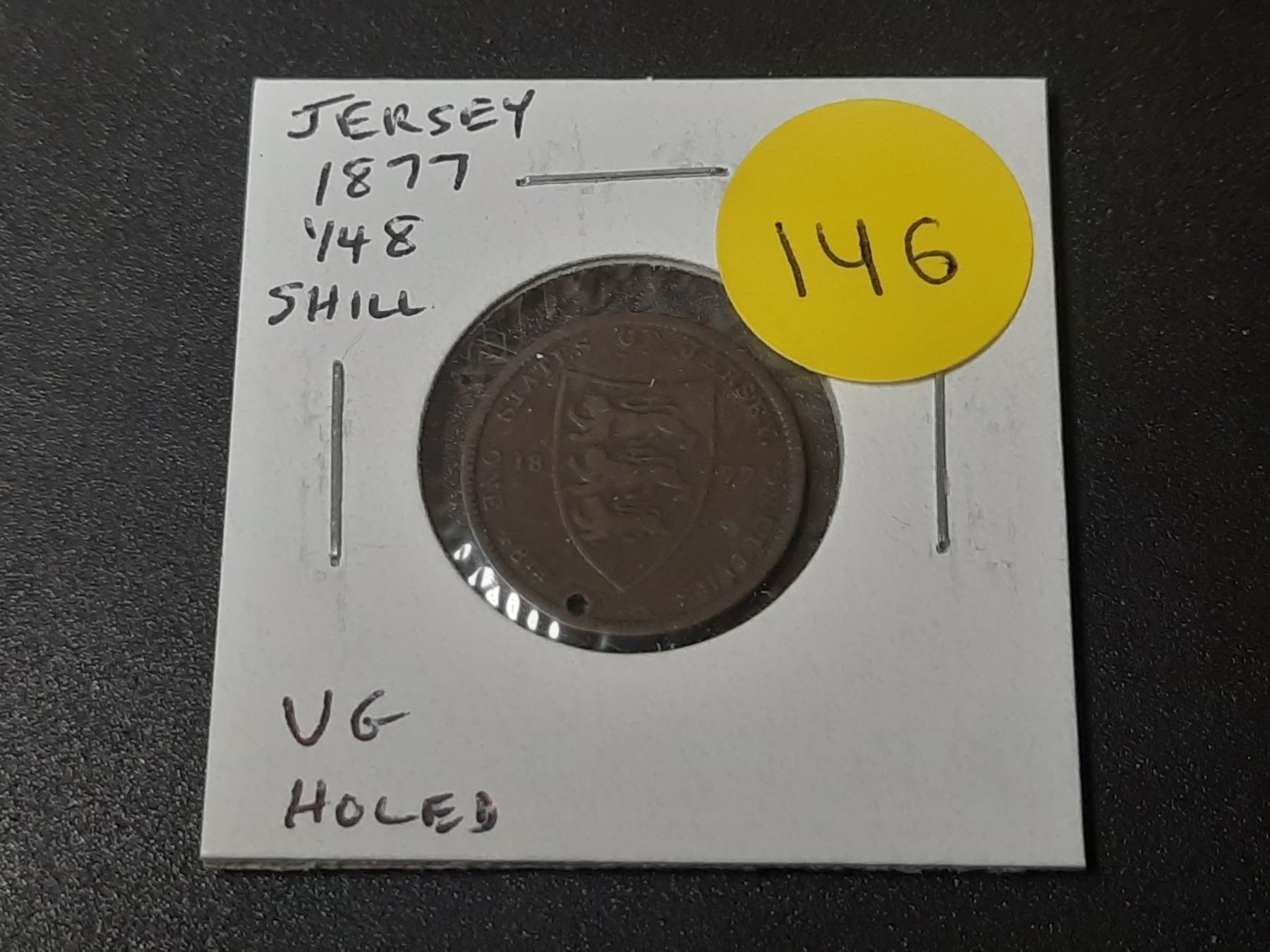 Jersey. 1877 1/48 Shilling. Queen Victoria. VG. Holed.