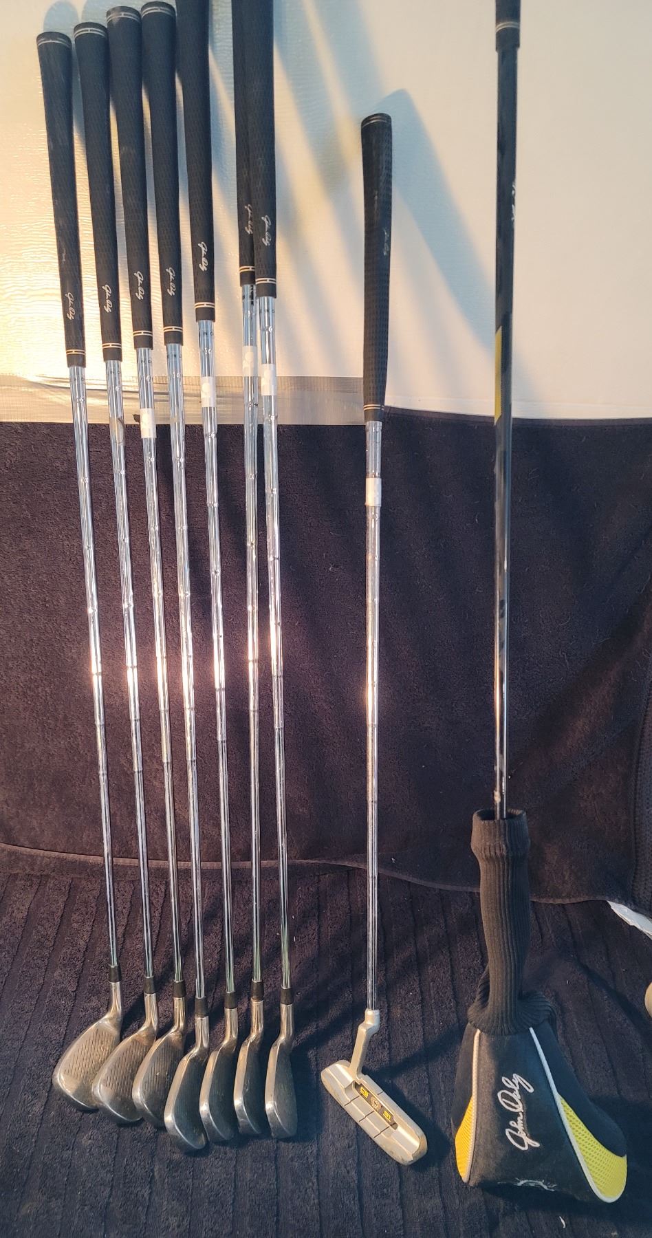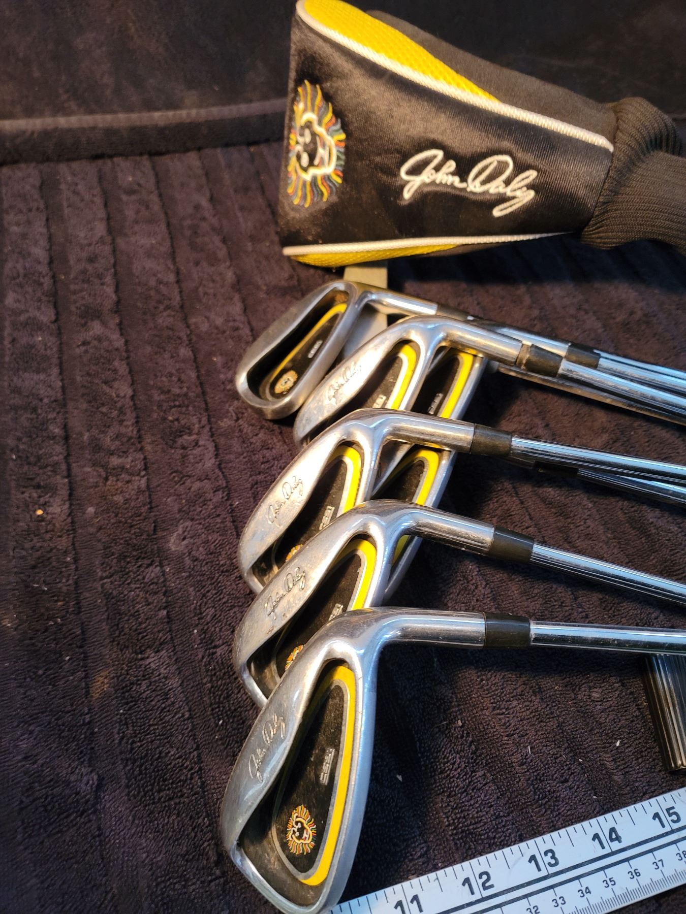 John Daly right hand golf clubs putter, 1 wood, PW-4 irons