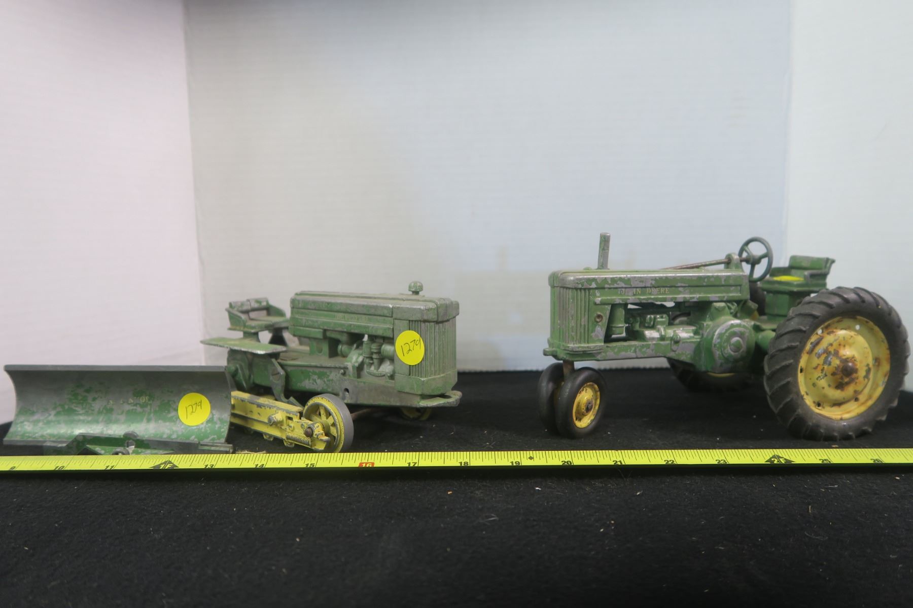 John Deere Cast Metal Tractor/Crawler (Tractor Complete, Crawler Missing Tracks, Broken Mount for Dozer Blade)