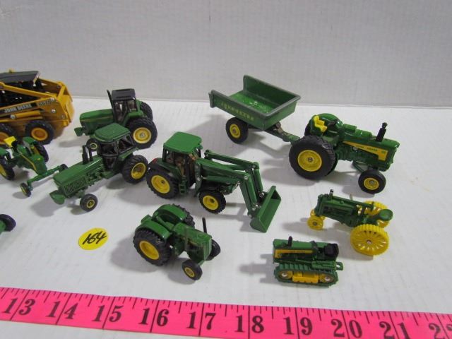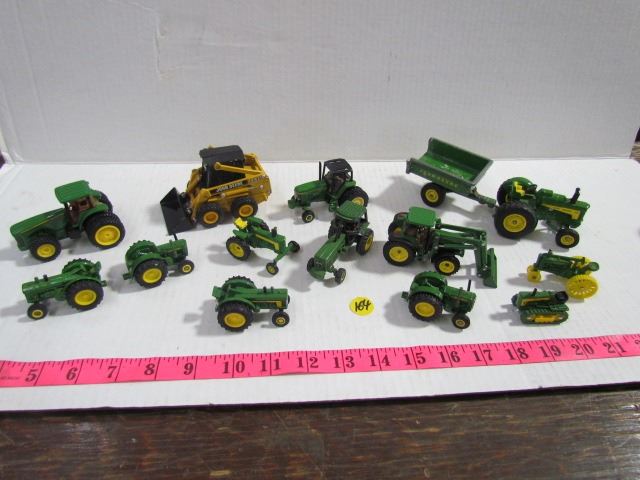 John Deere Miniatures-13 pieces Toy Tractors etc