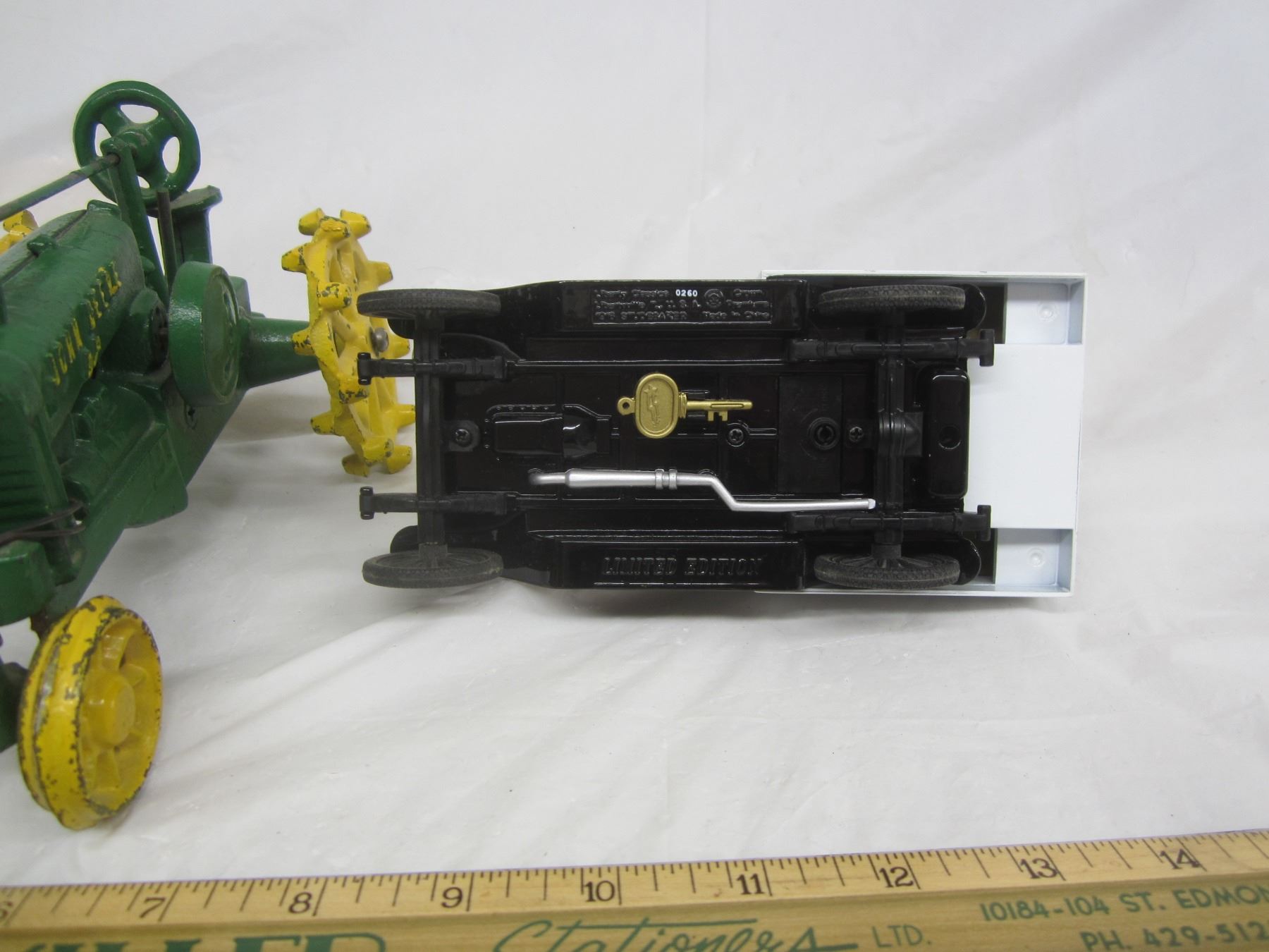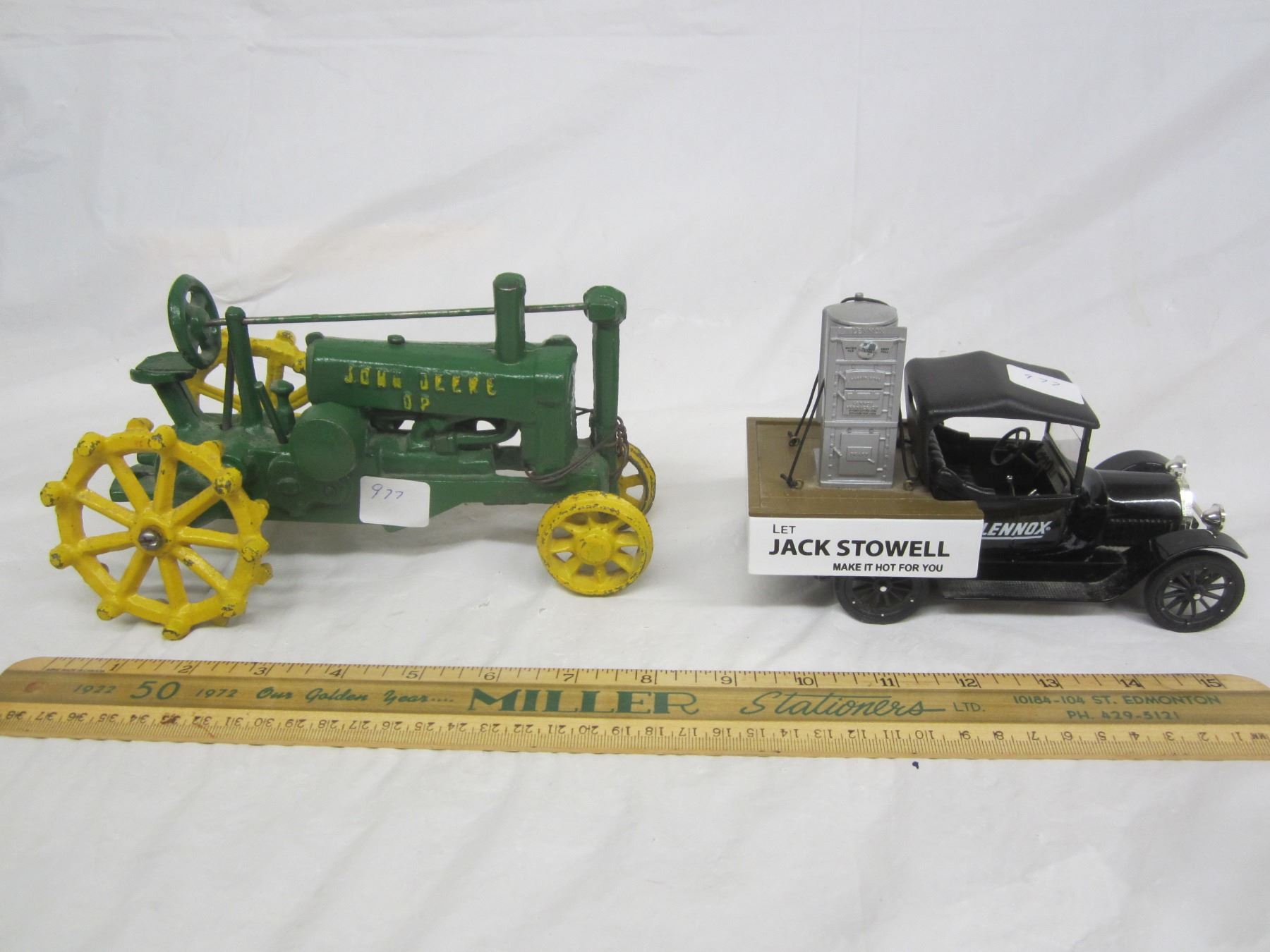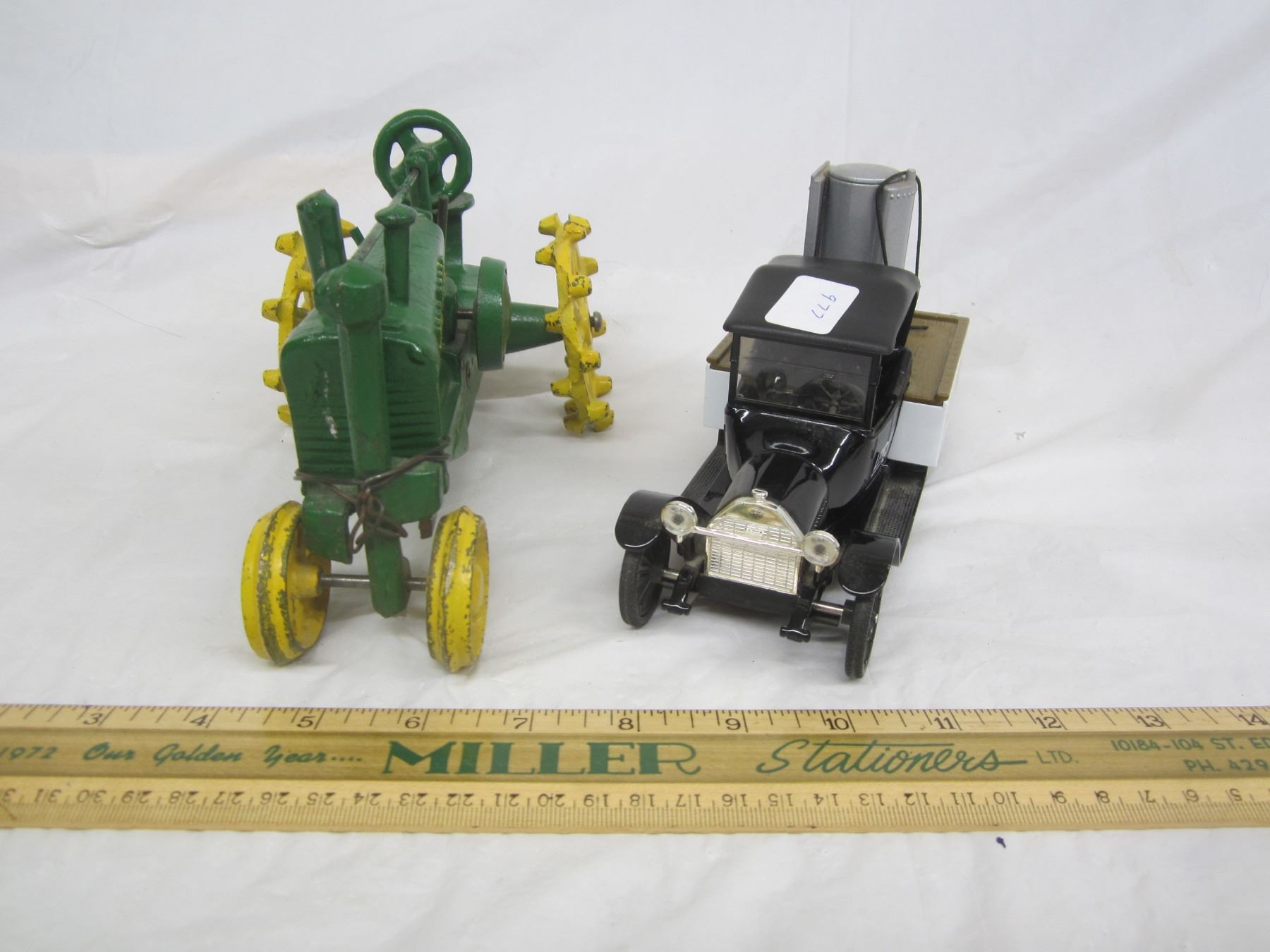 John Deere Tractor and Lennox Car Coin Bank has key