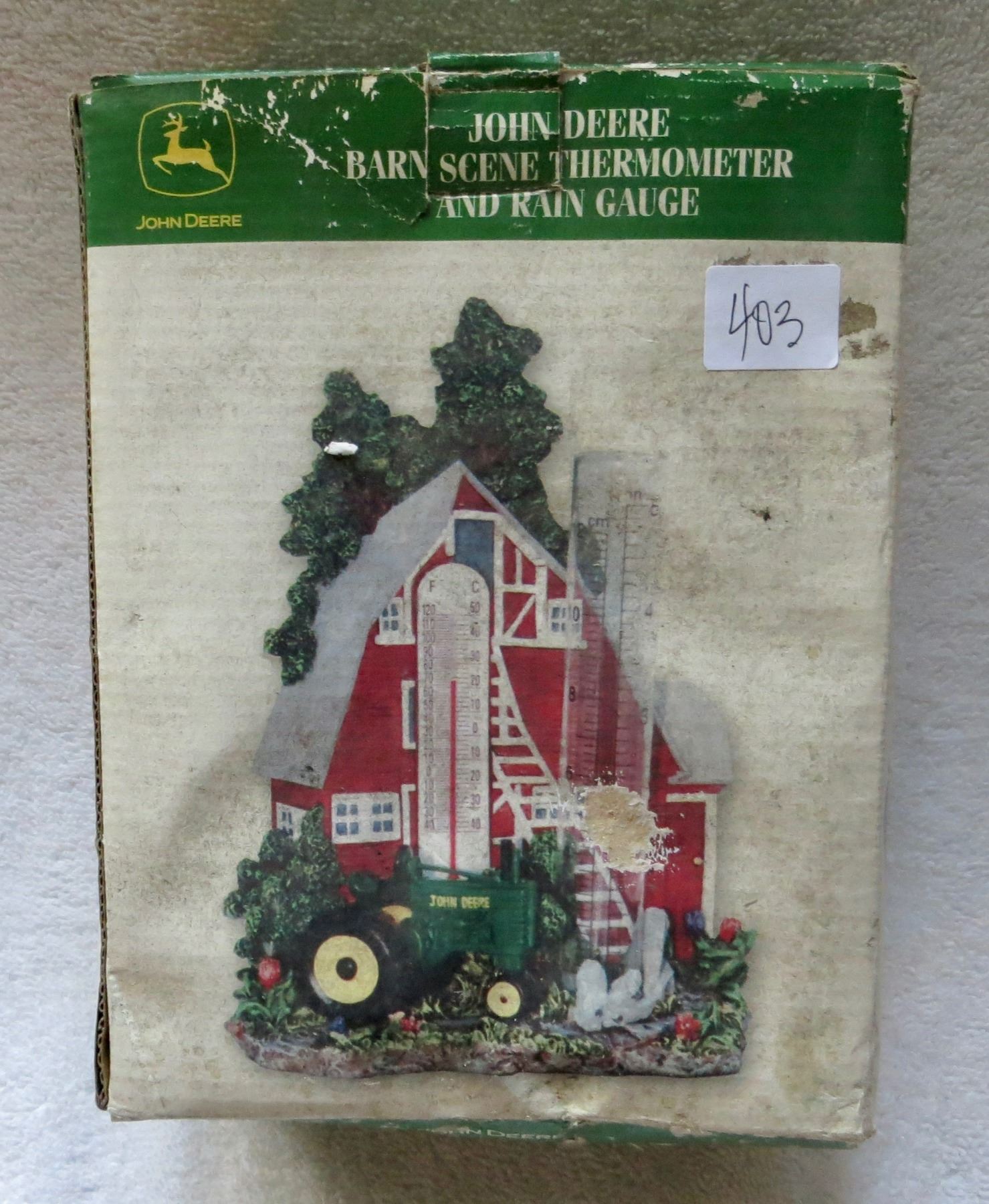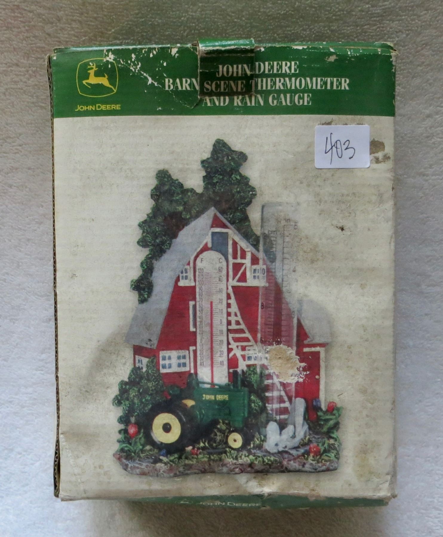 John Deere barn scene thermometer and rain guage - new in box