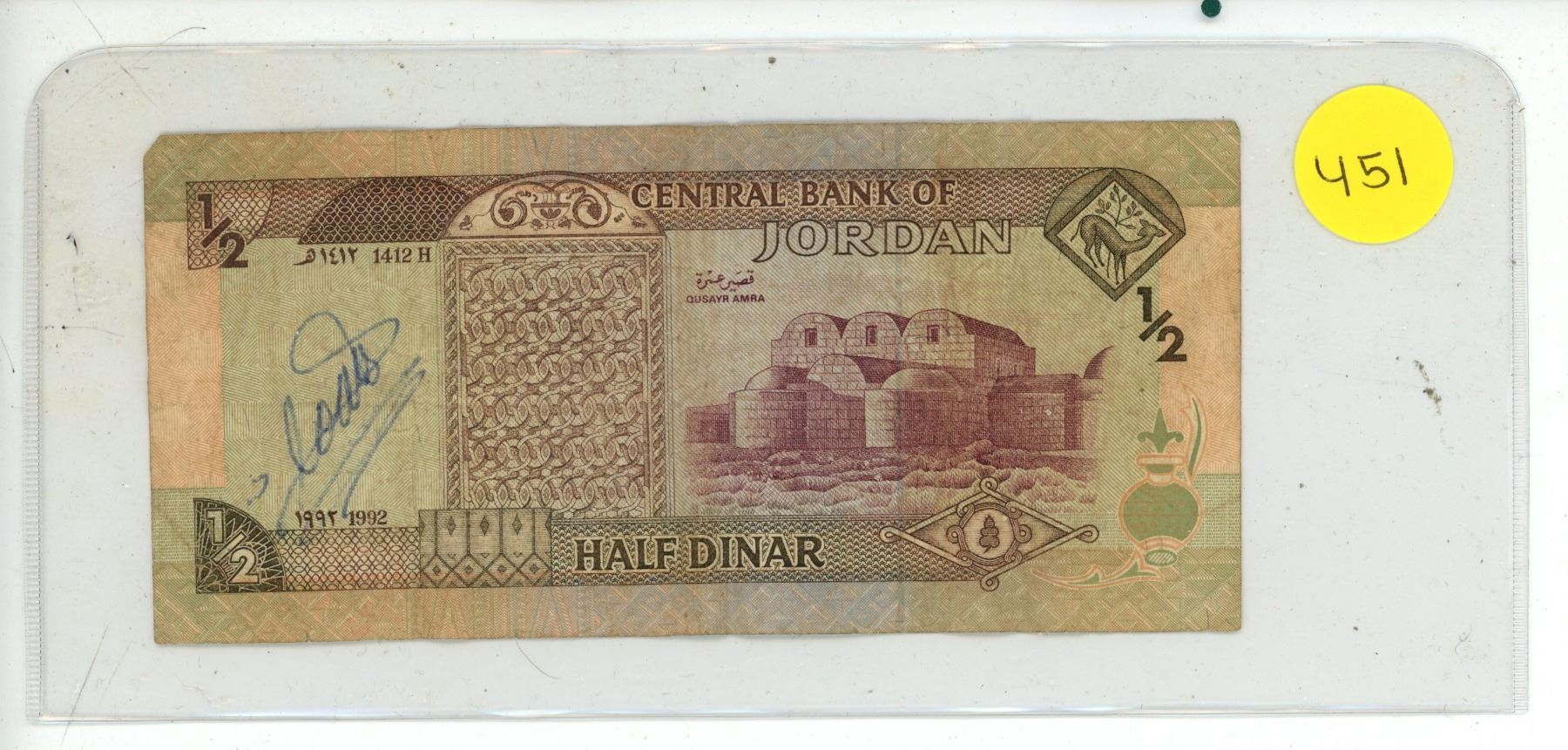Jordan 1/2 Dinar banknote issued by the Central Bank of Jordan.