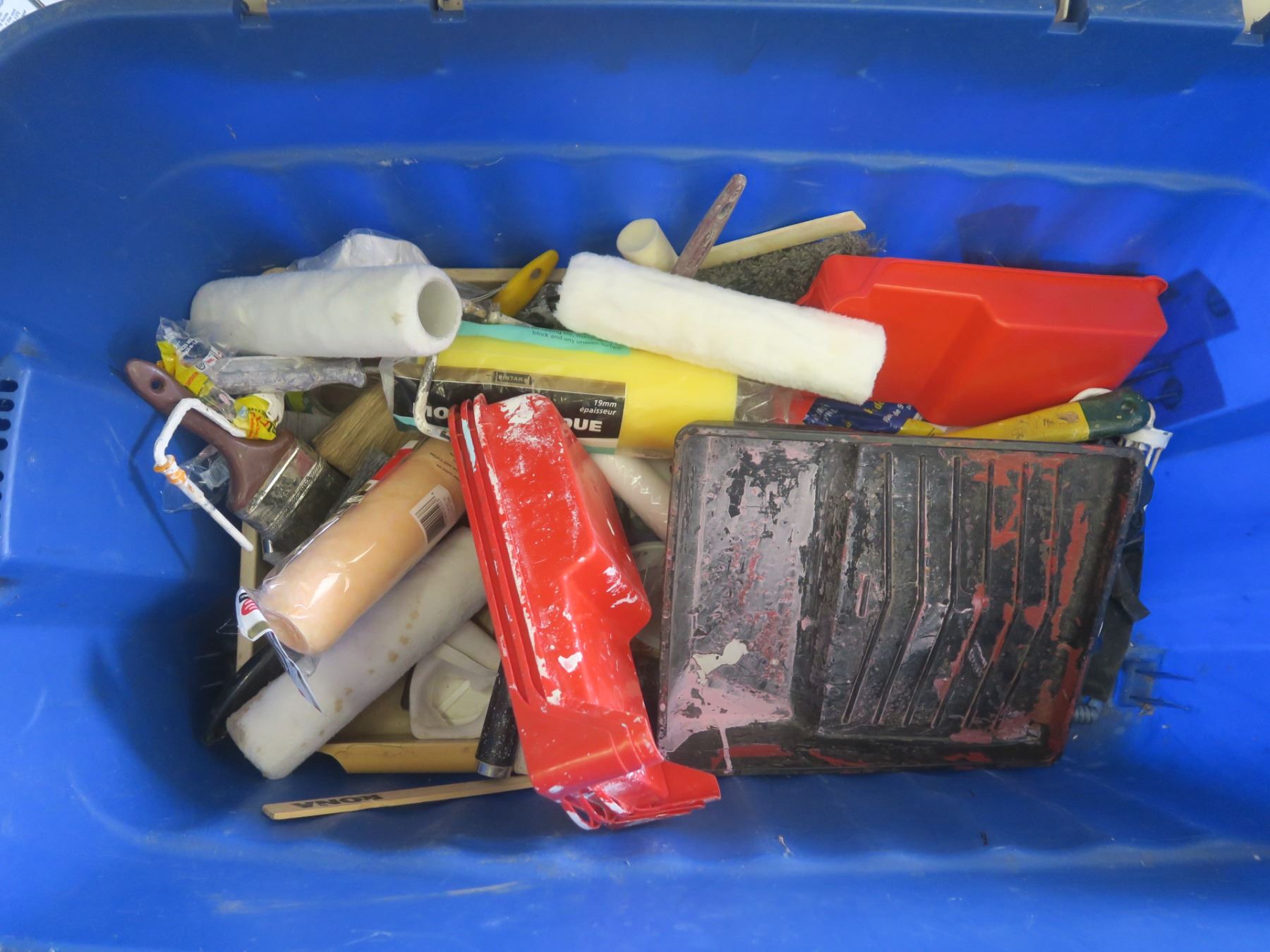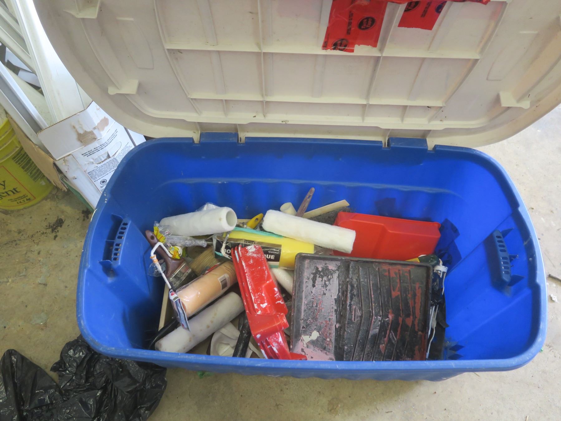 Jumbo Rubbermaid tub with assorted painting tools/supplies