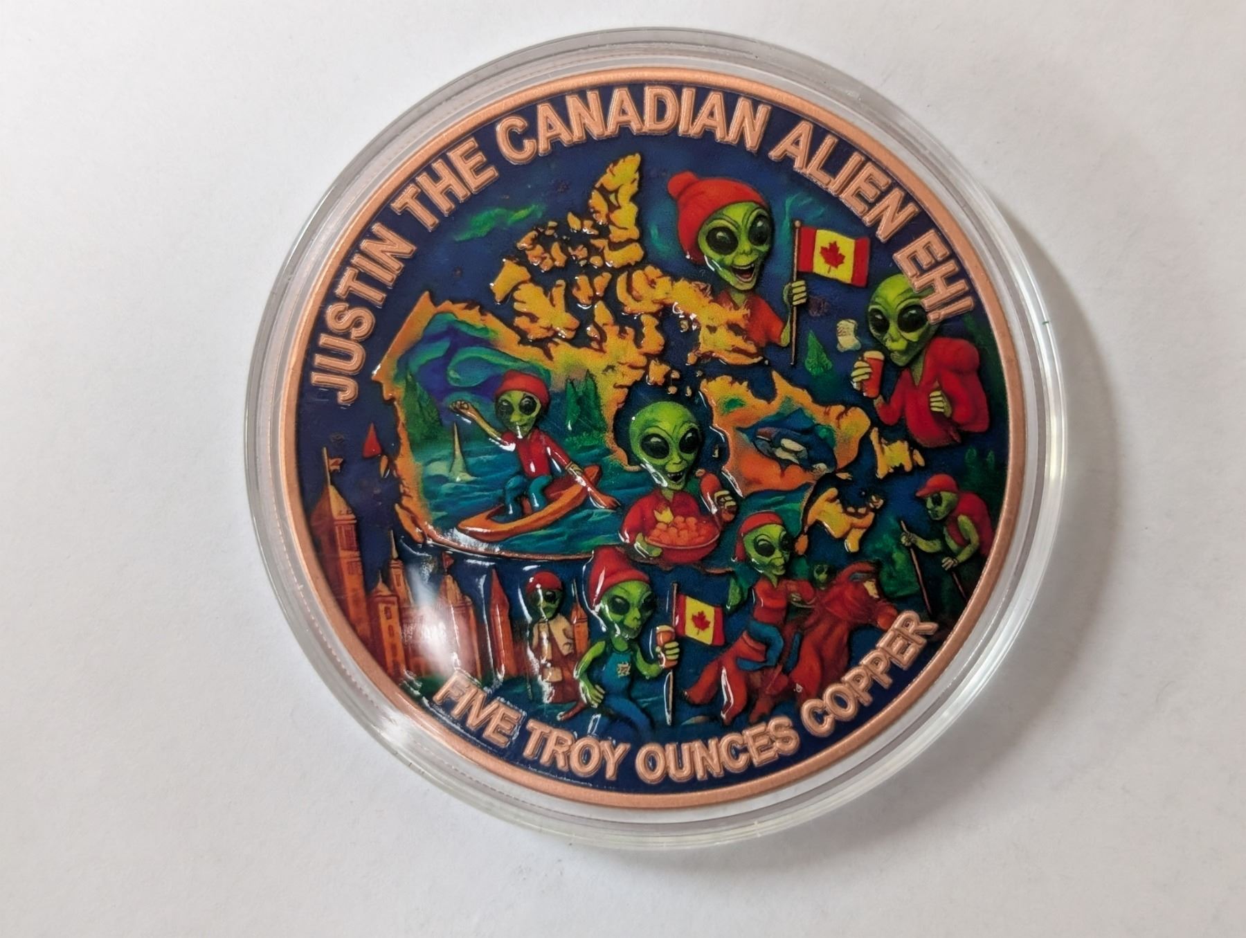 Justin The Canadian Alien Eh! Five Troy Ounces Copper Coin (Ai Alien Art) (Unverified)