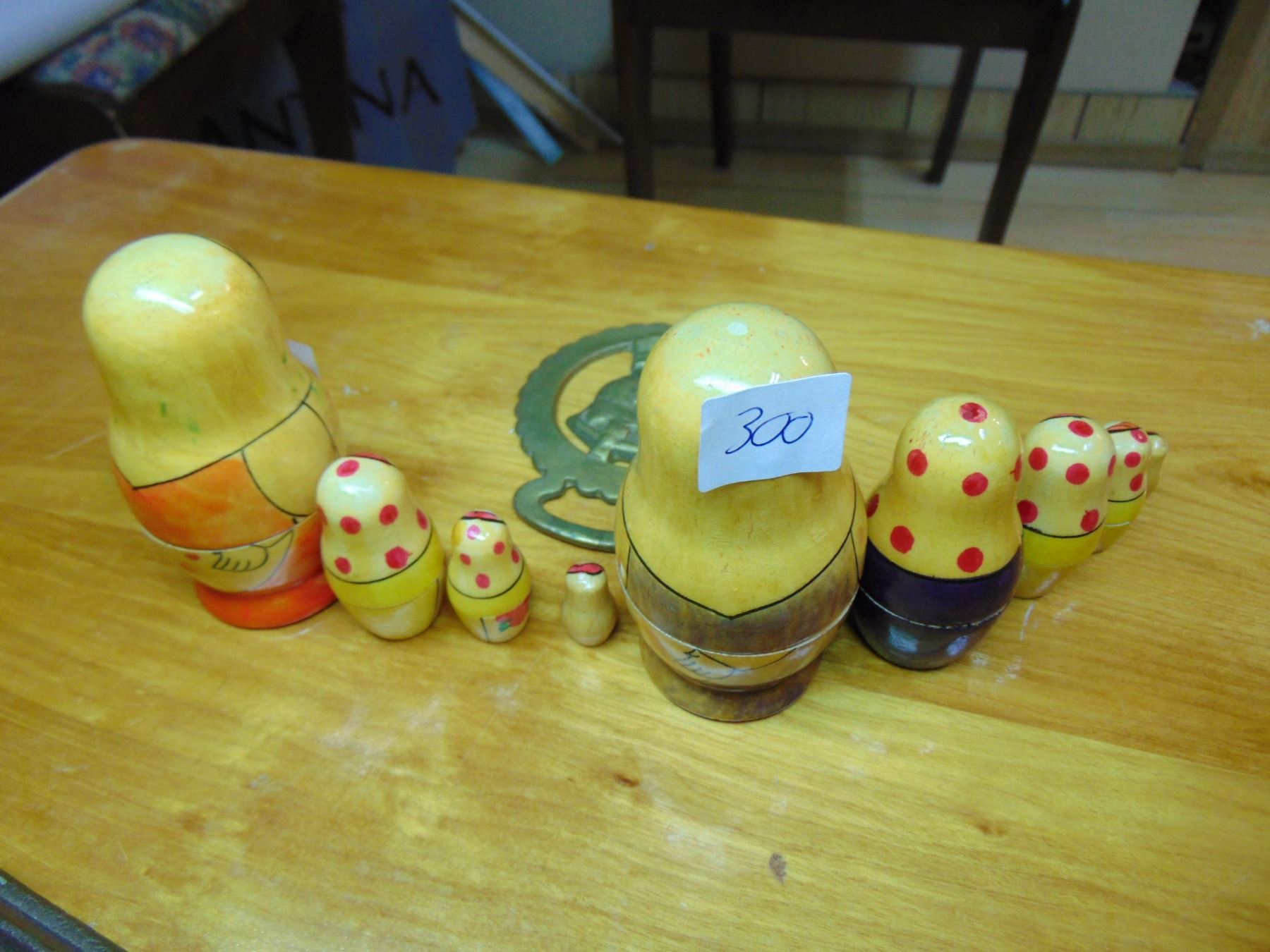 KING GEORGE HORSE BRASS AND STACKING DOLLS AS IS, AS SHOWN