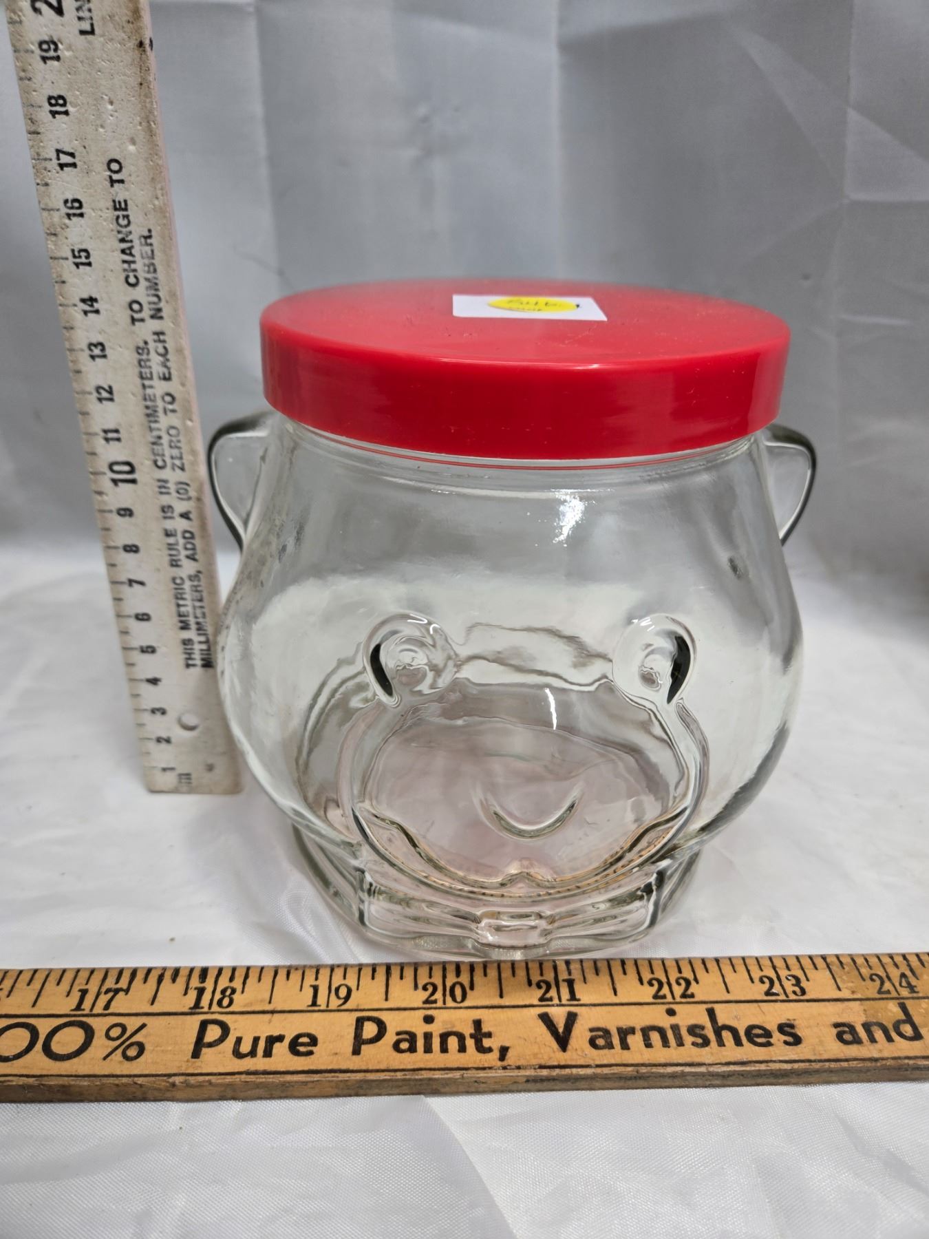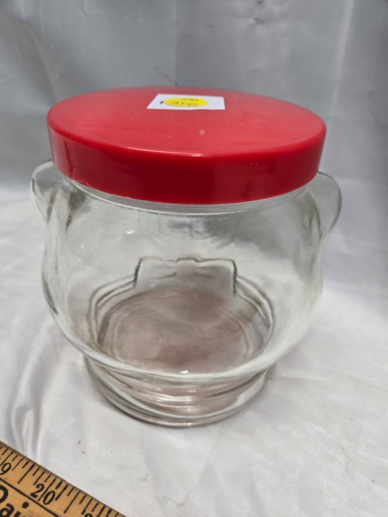 KRAT VINTGE 1989 GLASS TEDDY BEAR PEANUT BUTTER JAR.