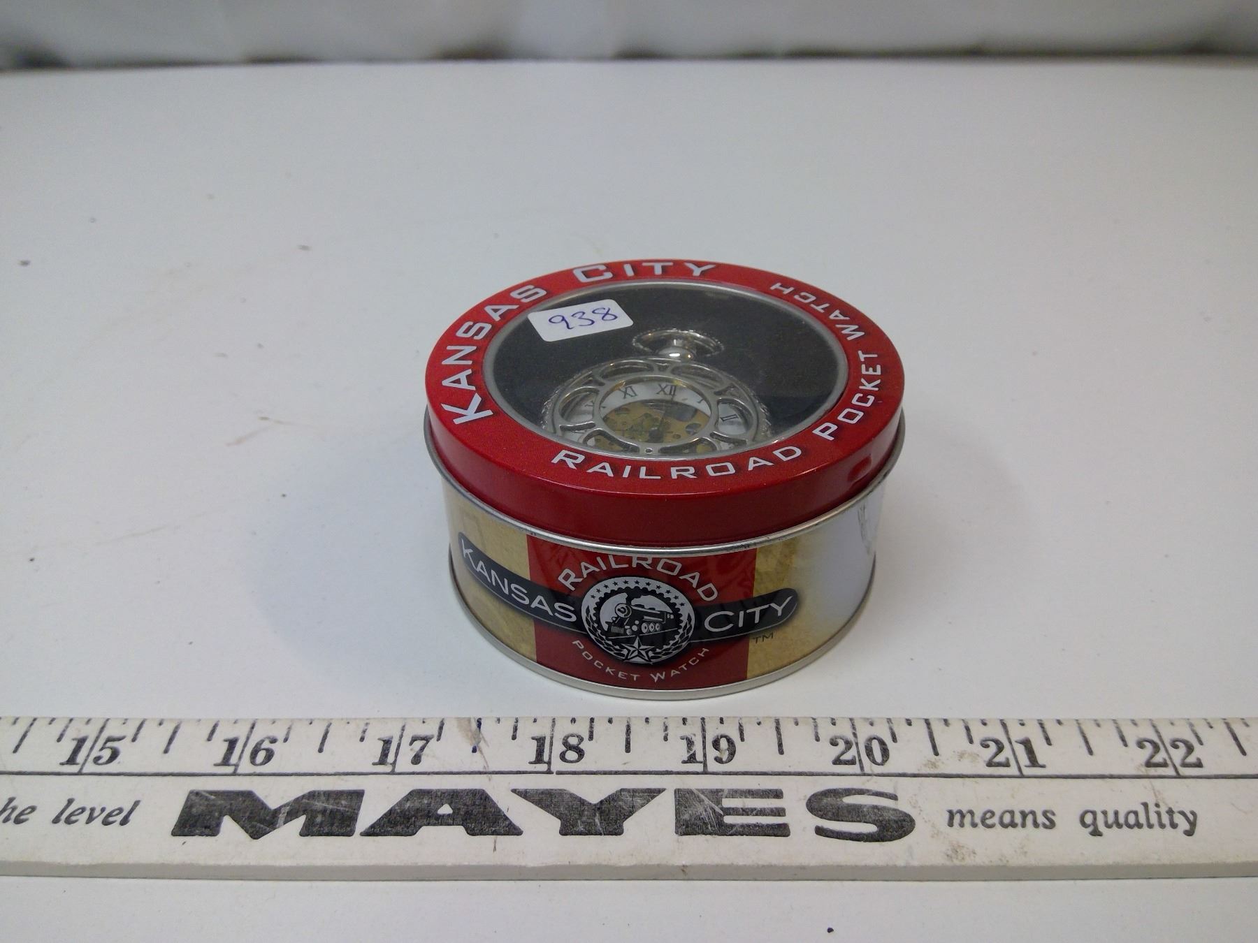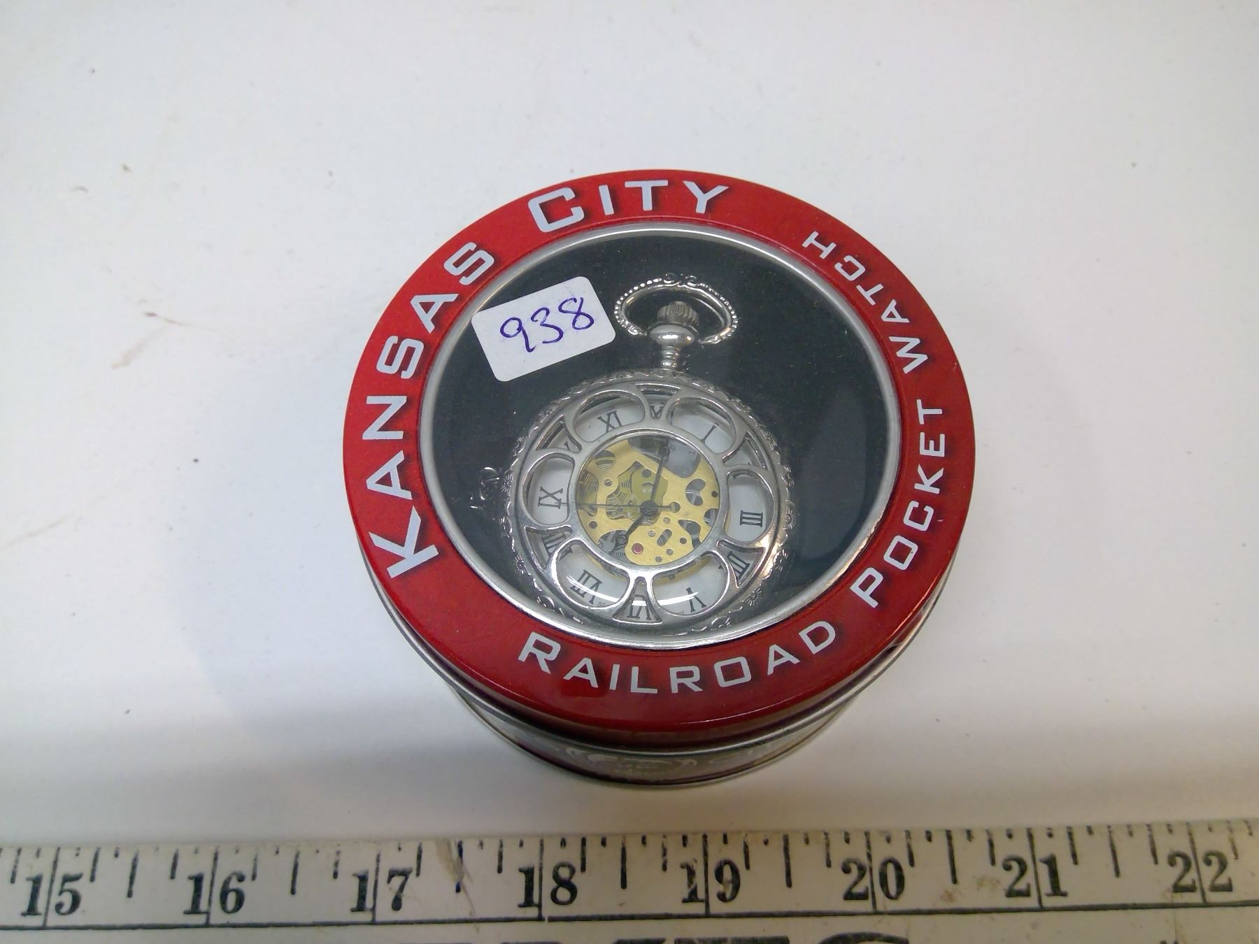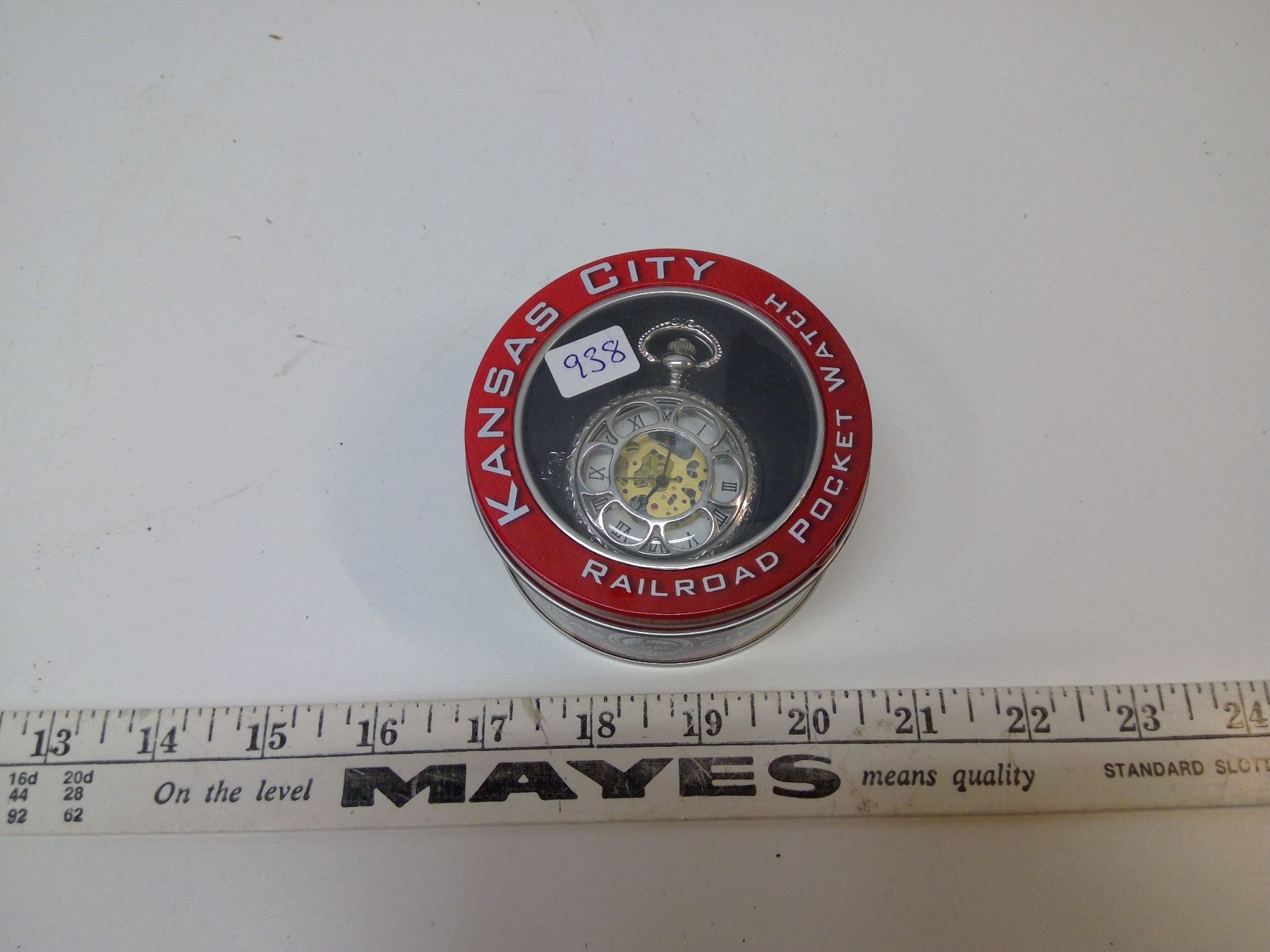 Kansas City Rail Road Pocket Watch W/ Chain + Case