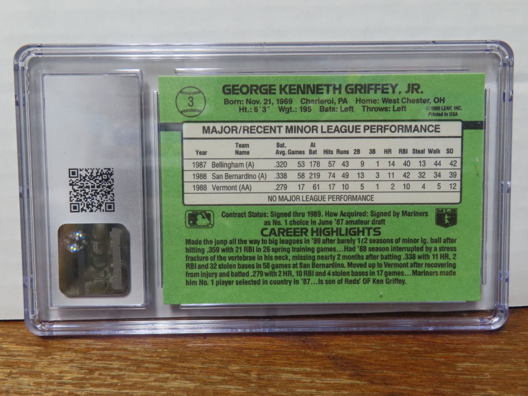 Ken gripffy JR. 1989 donruss "The rookies' RC #3 GR 8.5