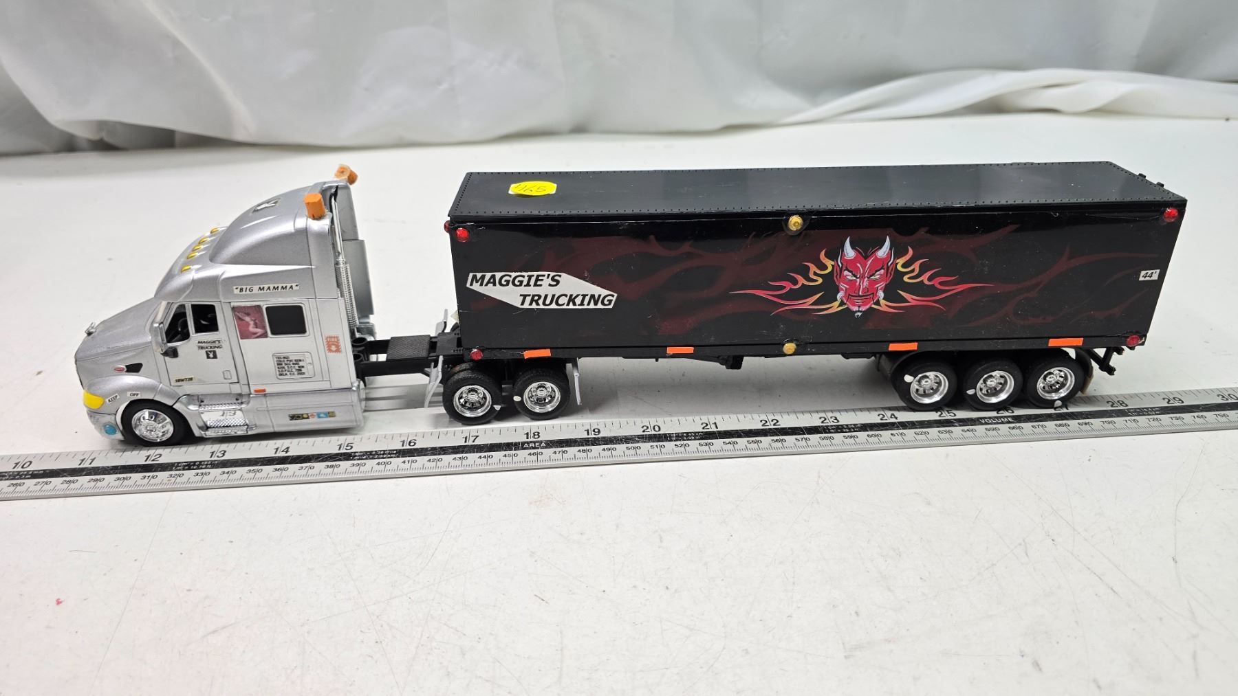Kenworth "Maggie's Trucking" semi truck and trailer - 17.5 silver cab