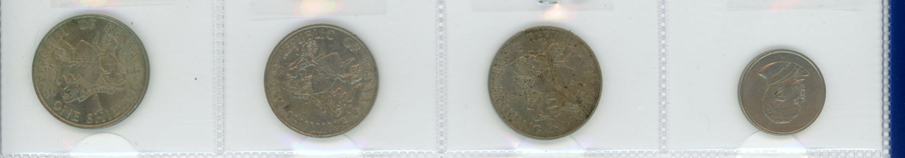 Kenya 1966 1 schilling - 3 coins and 1966 50 cents coin