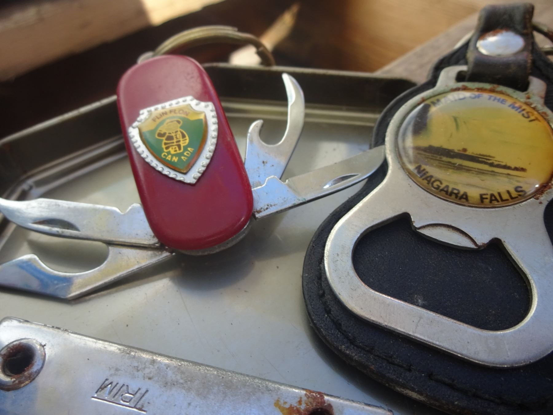 Key Chains, Goose, Ice Bucket, Border Edging, Roll of Window Tint, 3 small Frying Pans, Pot