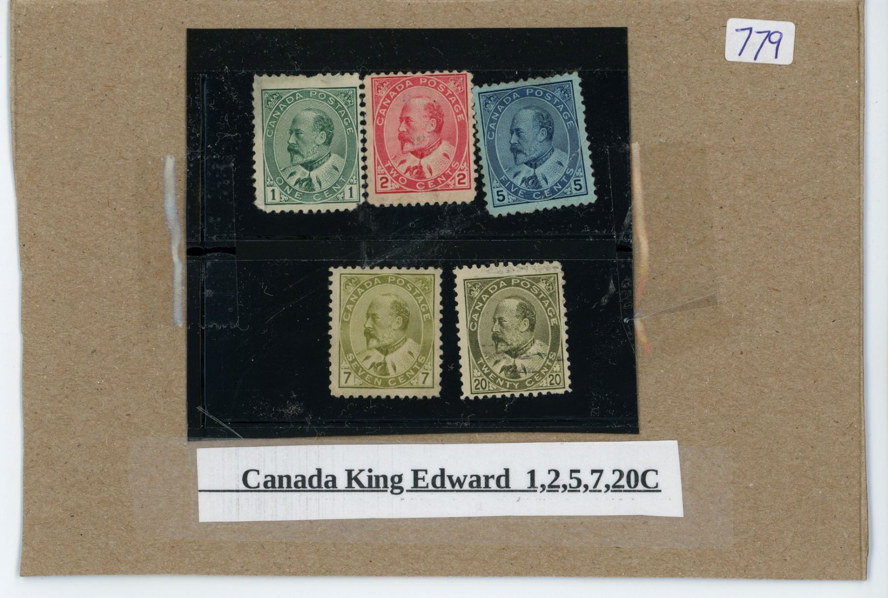 King Edward Canadian stamps - 1, 2, 5, 7, & 20 cent