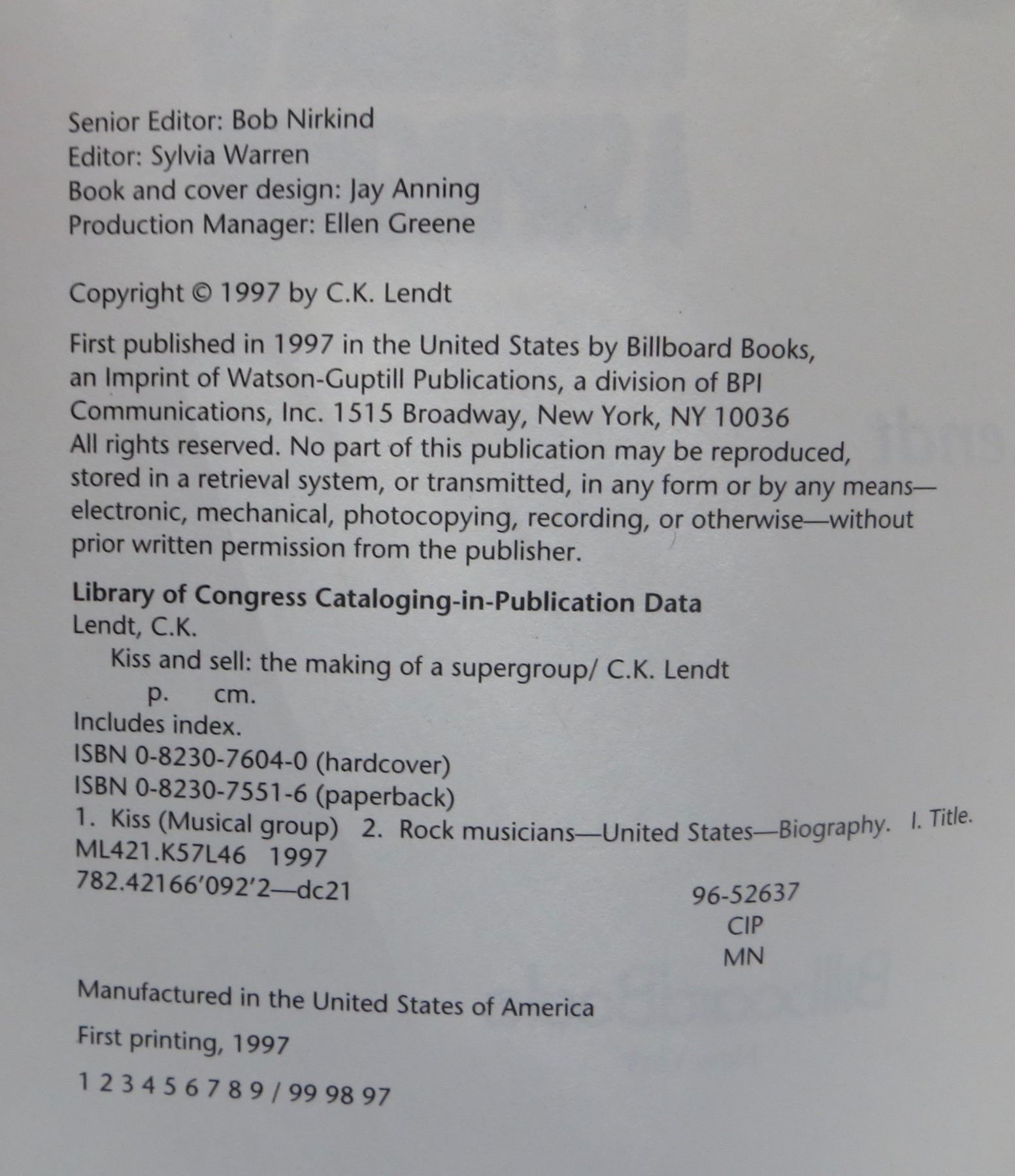 "Kiss and Sell" book on the band "Kiss" - 1st edition 1997