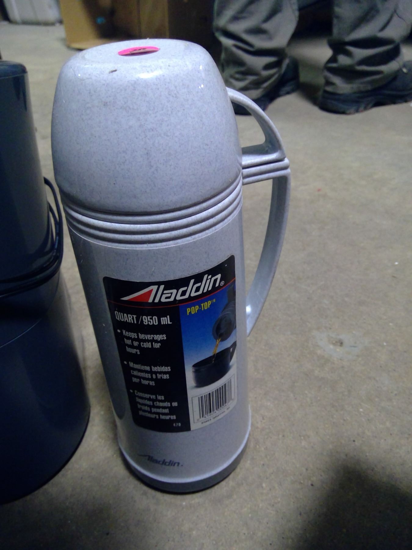 Kitchen Appliances - Aladdin 1 Quart Thermos, Sunbeam Wine Chiller, Salton Mini Donut Maker, and Microwavable Egg Cookers