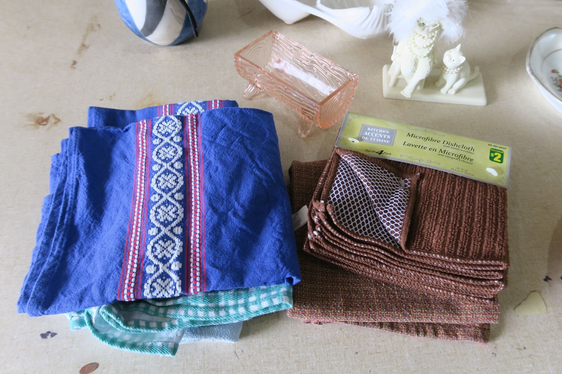 Kitchen Items Bundle - 5 Trays/Dishes, 9 Clothes, Vase and Statuette