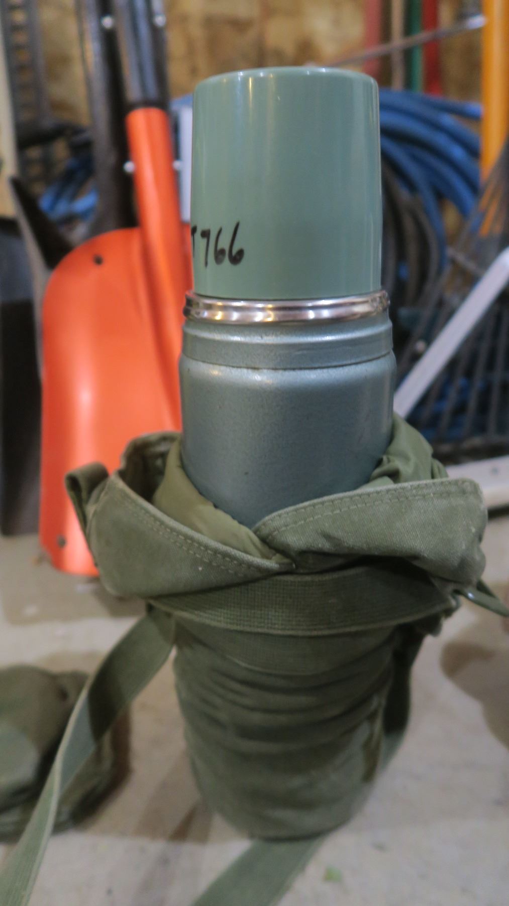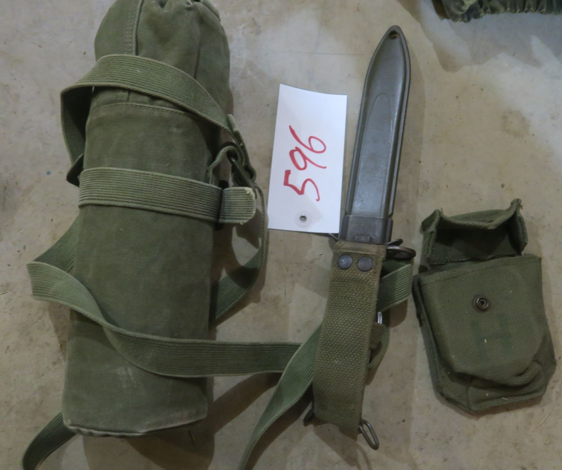 Knife/Bayonet with sheath + military thermos holder with thermos + mini pouch