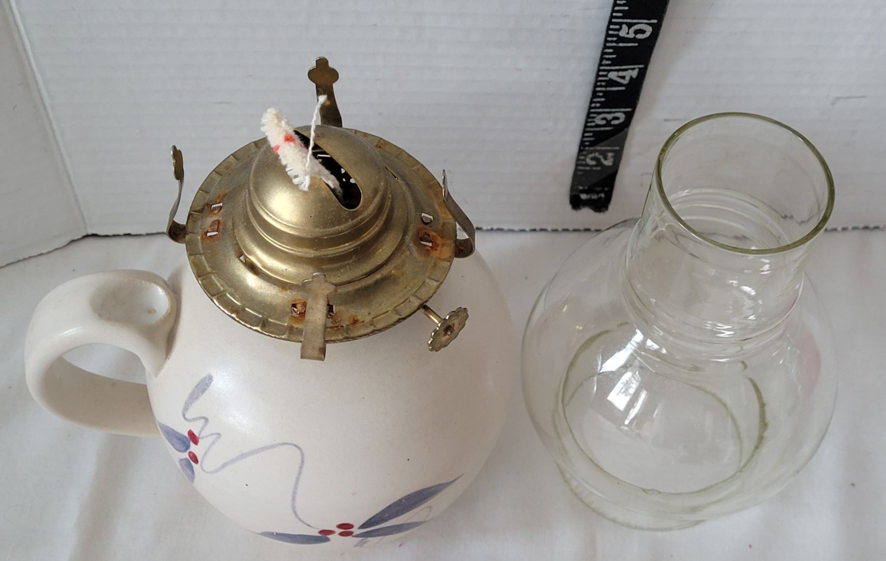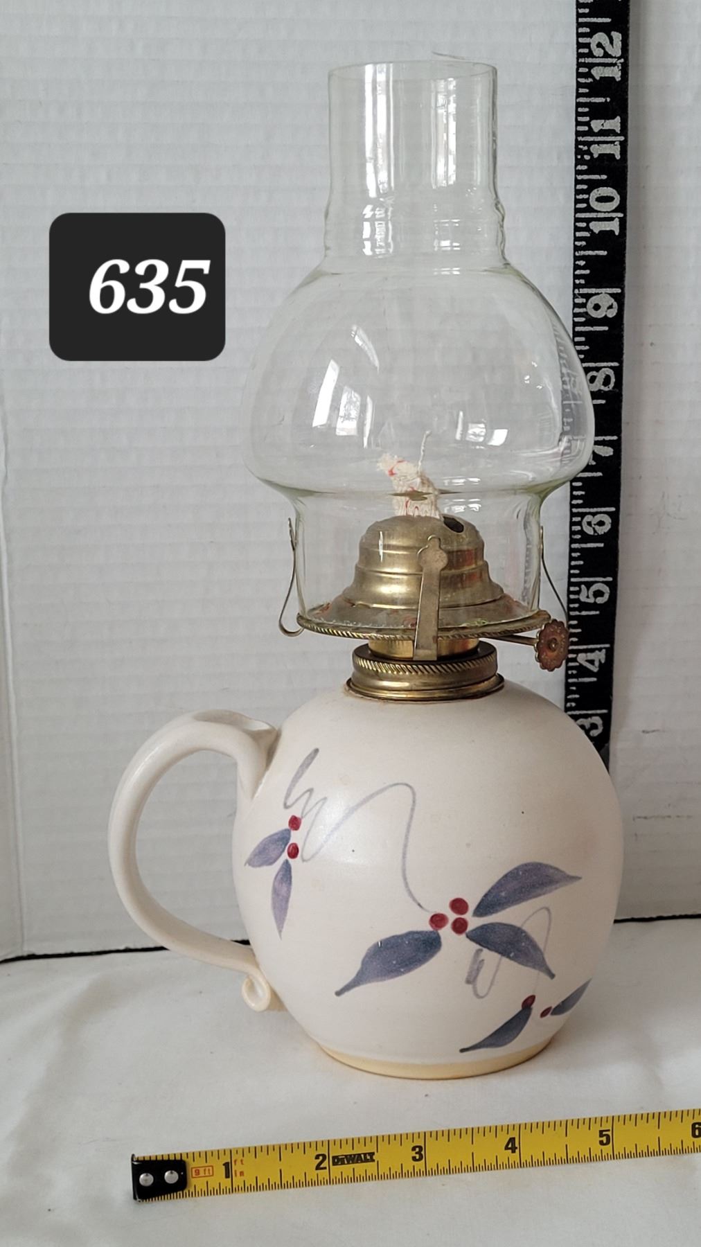 Kurenda stoneware Hurricane oil lamp with nice chimney.